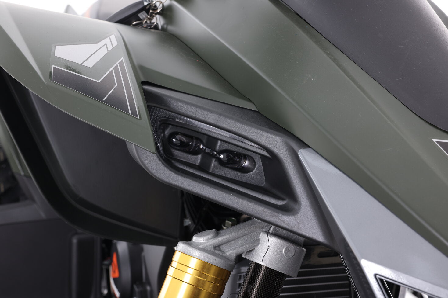It takes only a quick glance at the Daytona 250FI to realize it’s designed to rip up the trails at high speed. The rakish front end flows into a mini wind deflector and color-matched handguards. Squinty-eyed LED headlights look aggressive and provide excellent illumination, and a digital instrument panel provides all the data (speed, gear position, rpm, fuel level) they need to keep roosting even after dark.