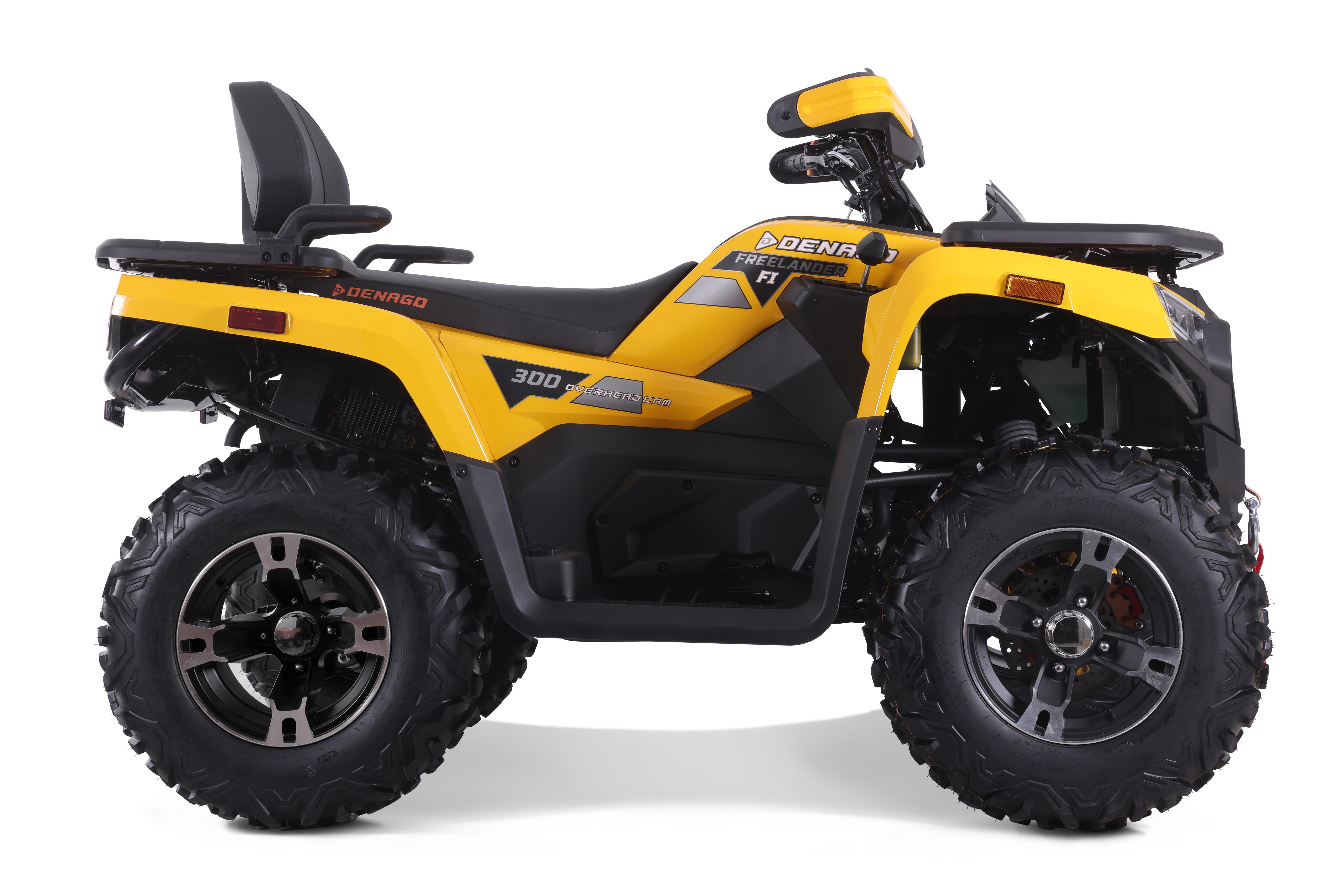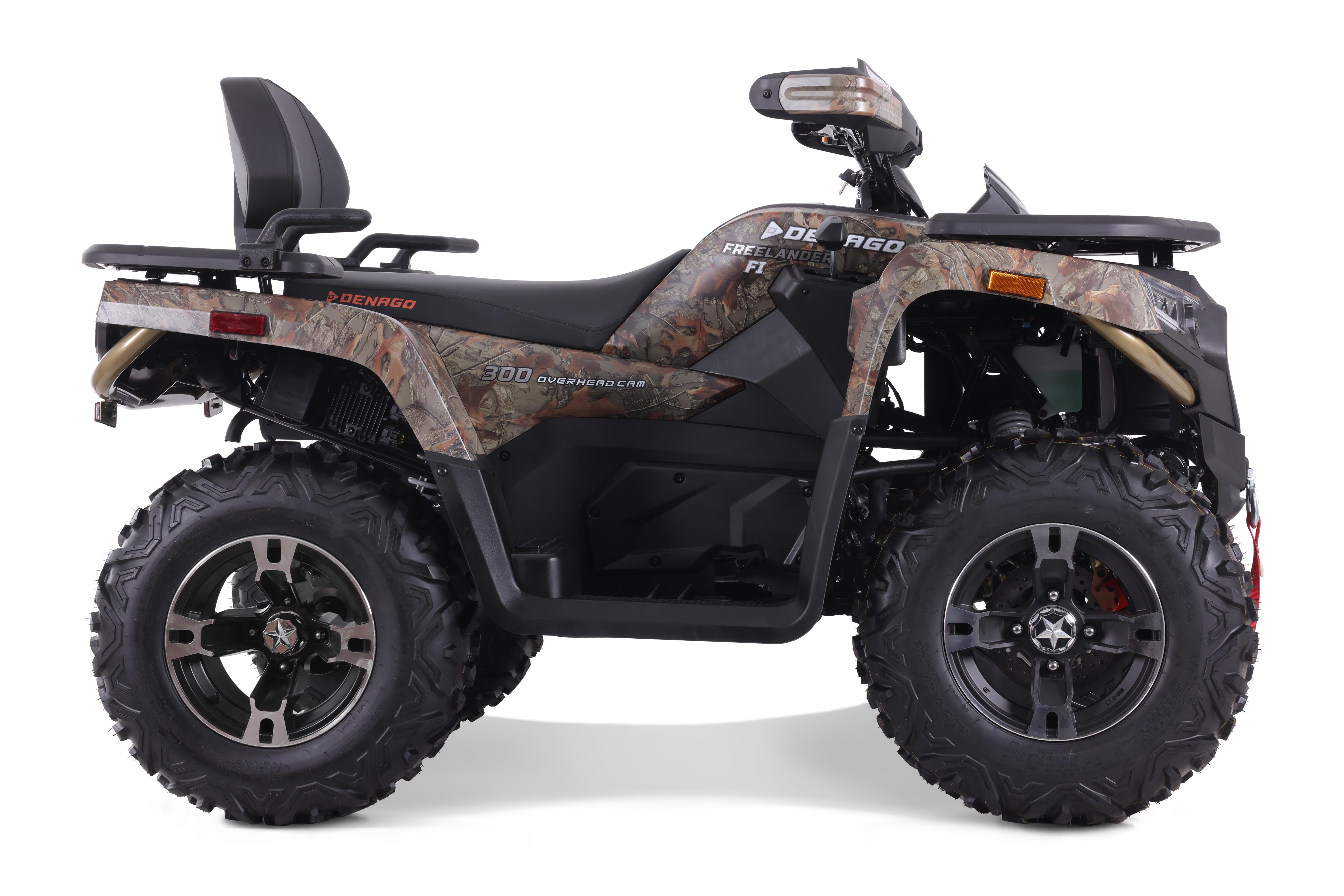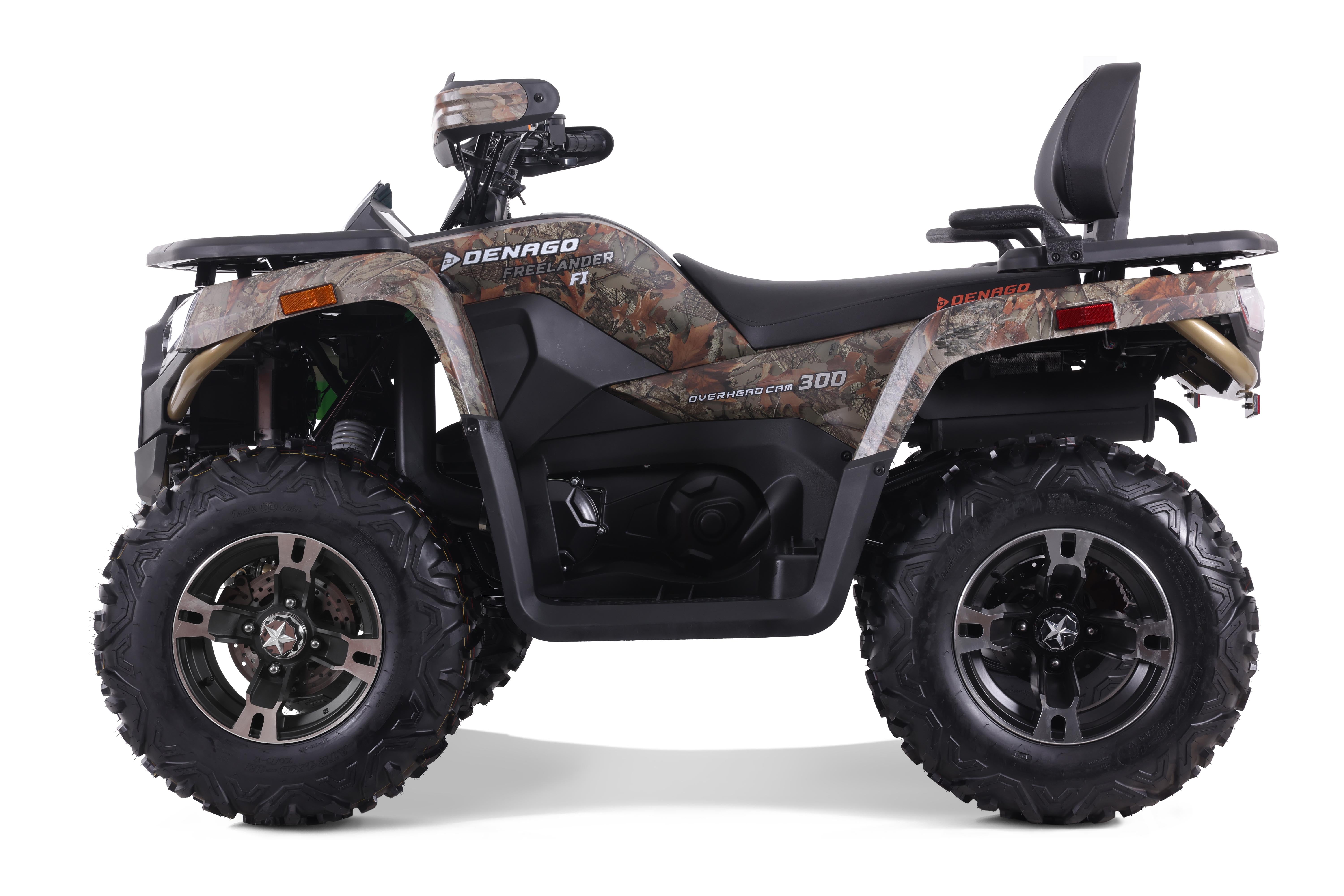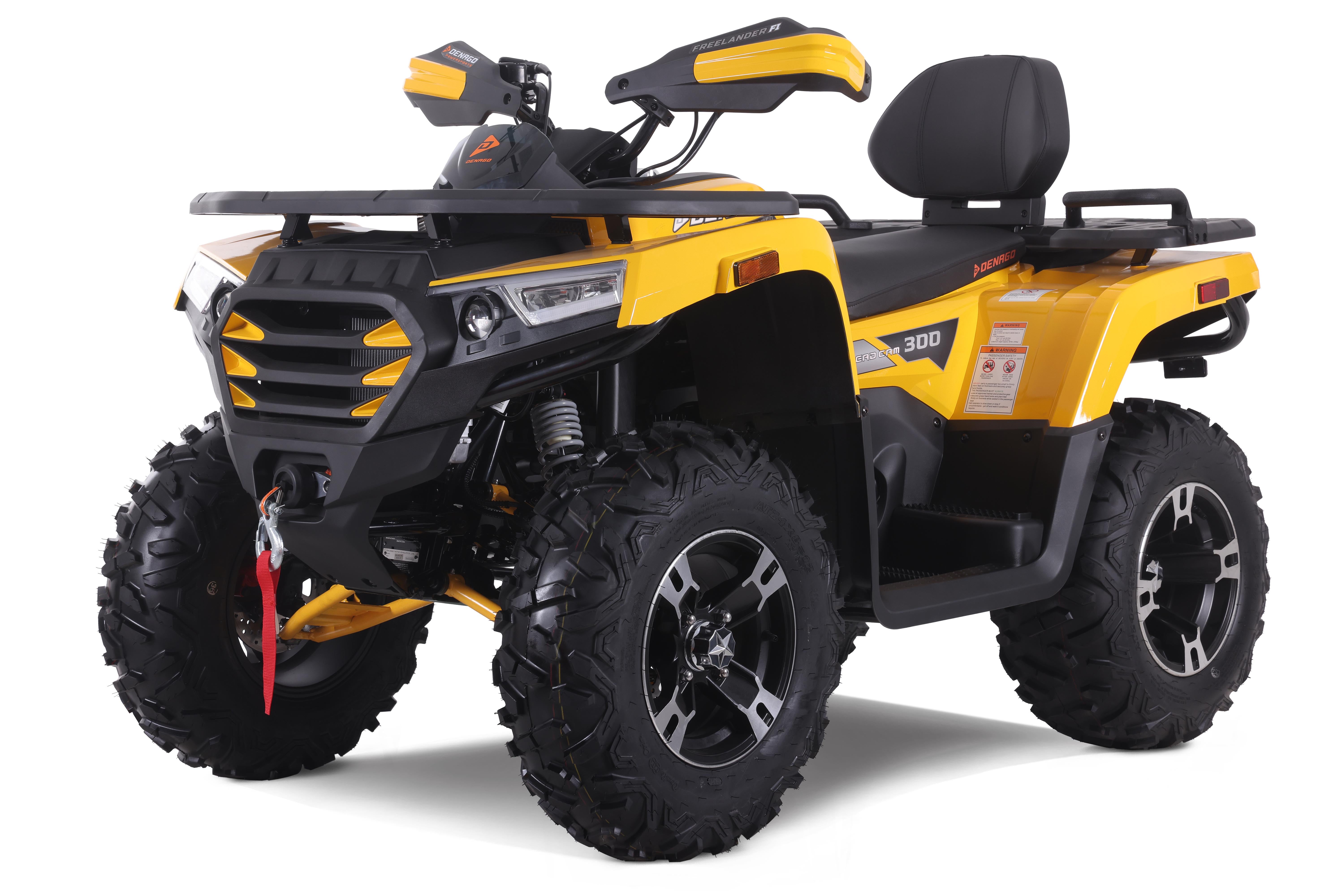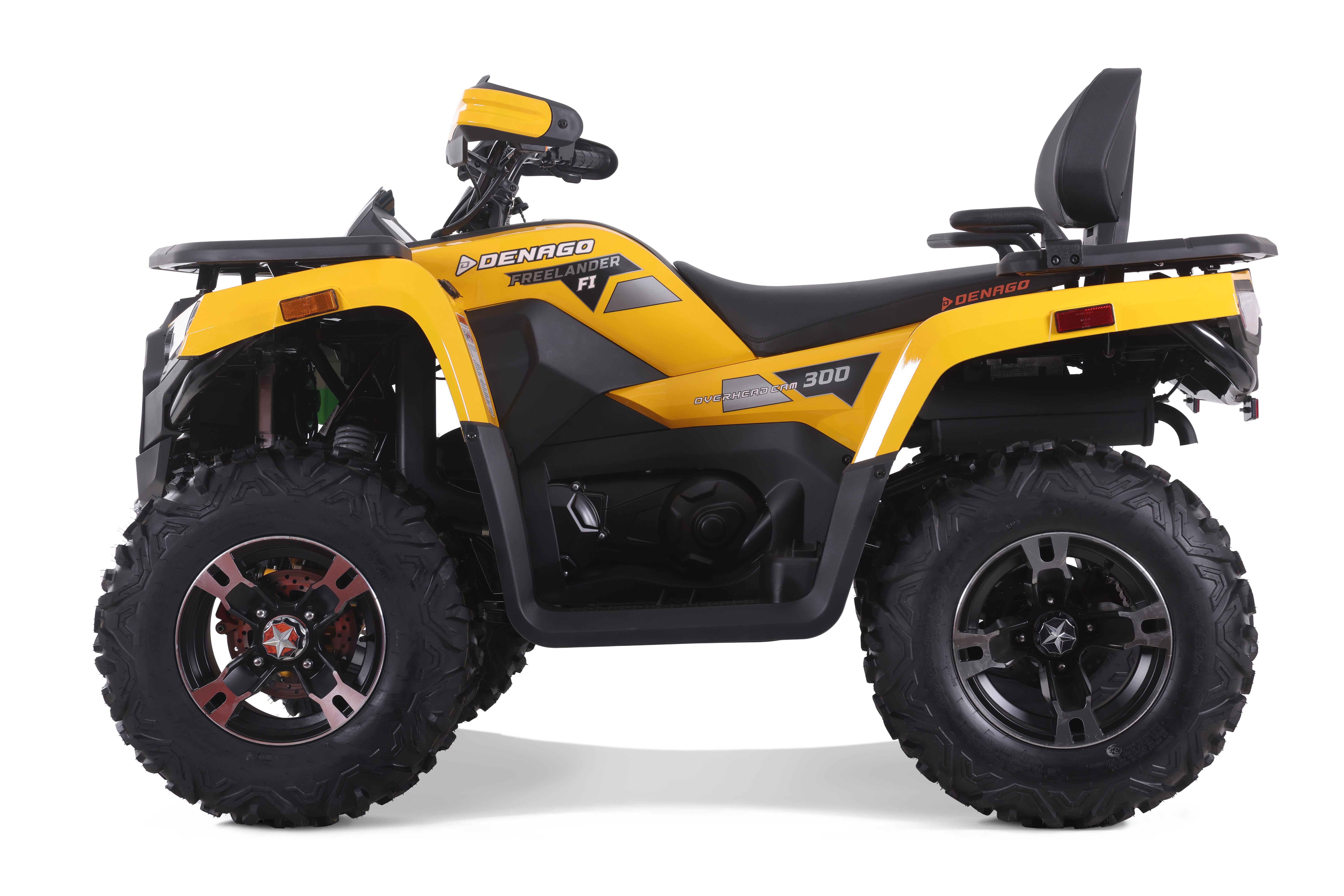 The Freelander 300FI takes ATV adventures to the next level, boasting a liquid-cooled overhead-cam engine paired to a CVT automatic transmission transmitting torque to big off road tires via a maintenance free shaft-drive system. It’s loaded with nice features like a fuel injected overhead-cam engine, double A arm front suspension with adjustable shocks, TFT instrumentation, 2-up seating, and lightweight aluminum wheels.