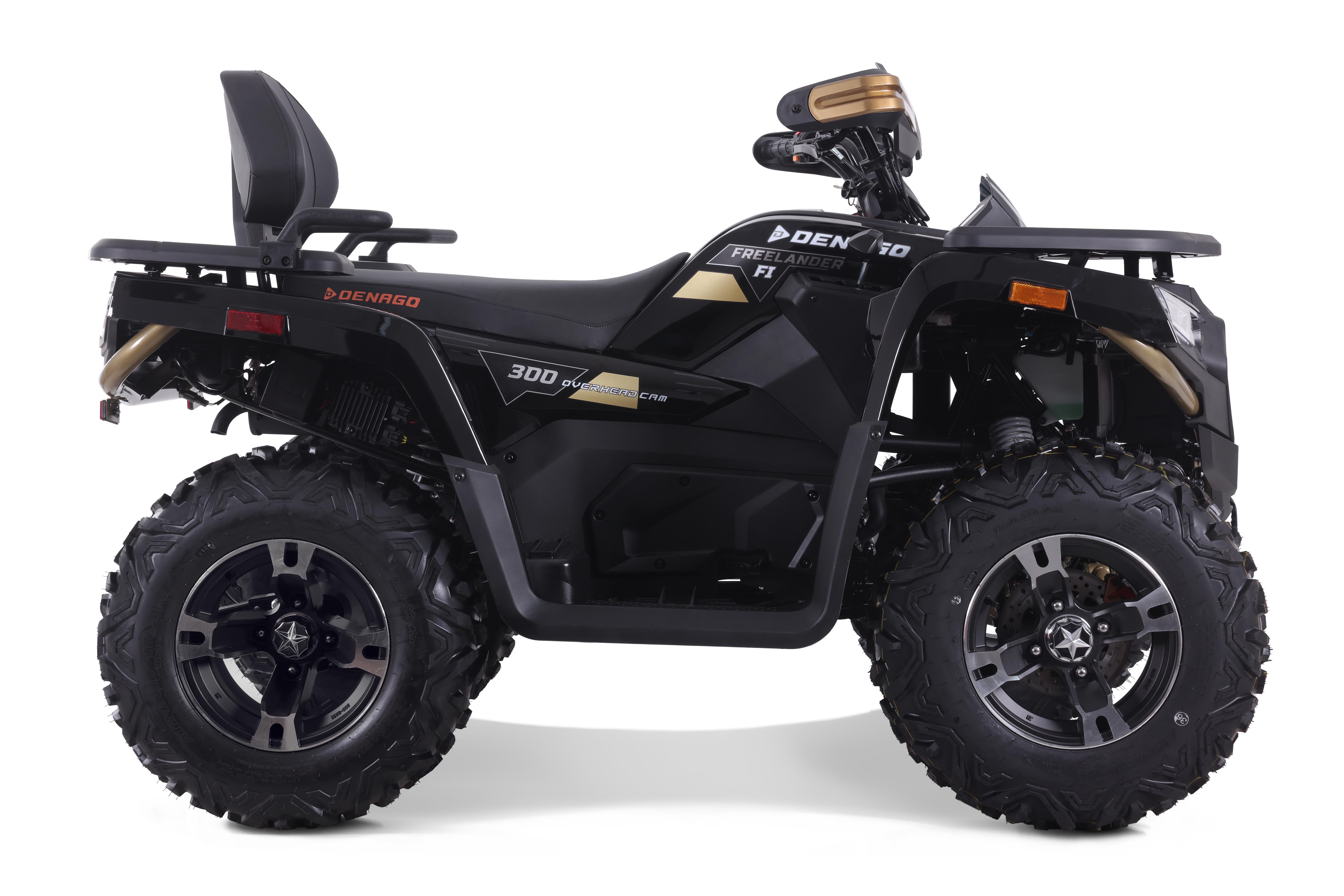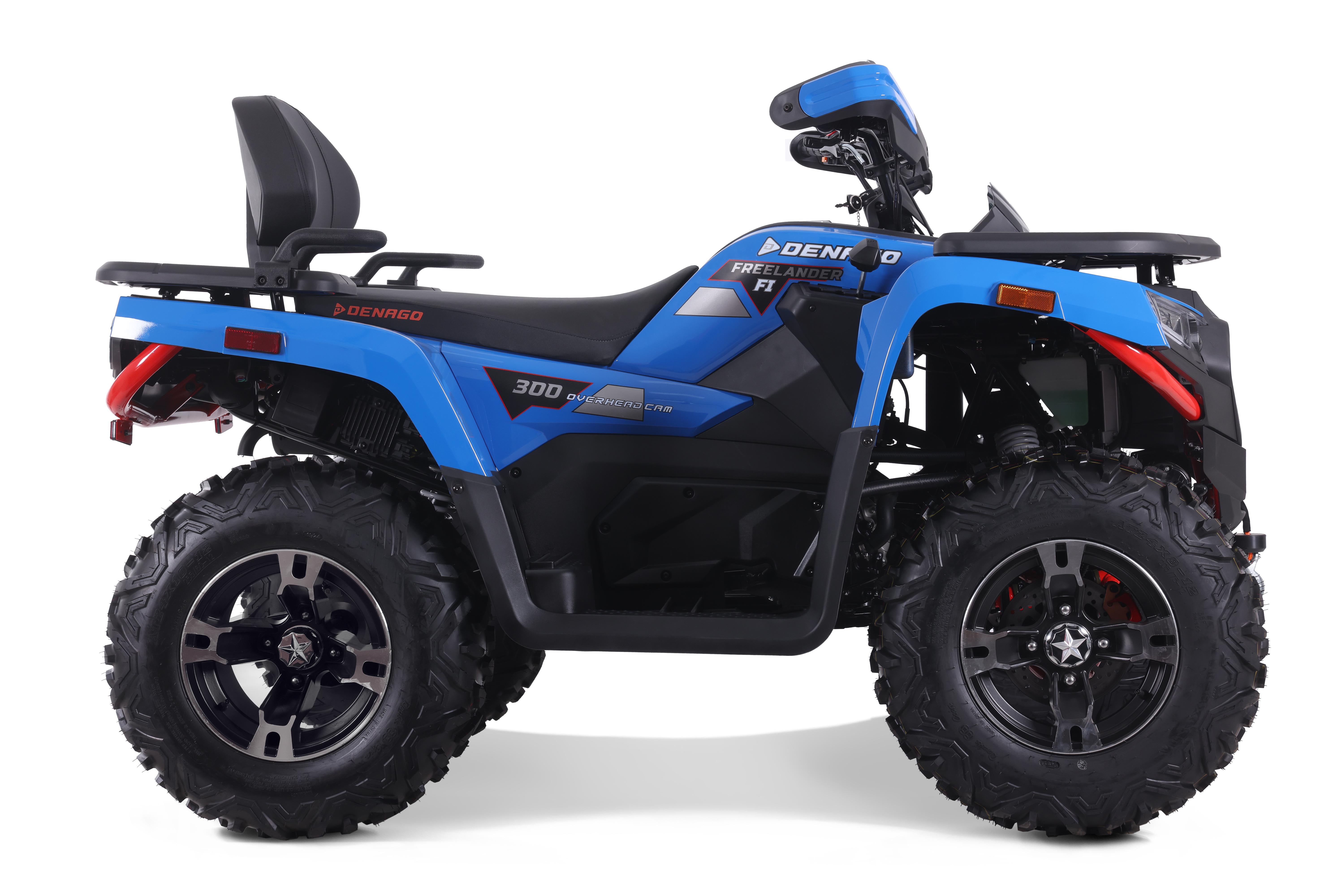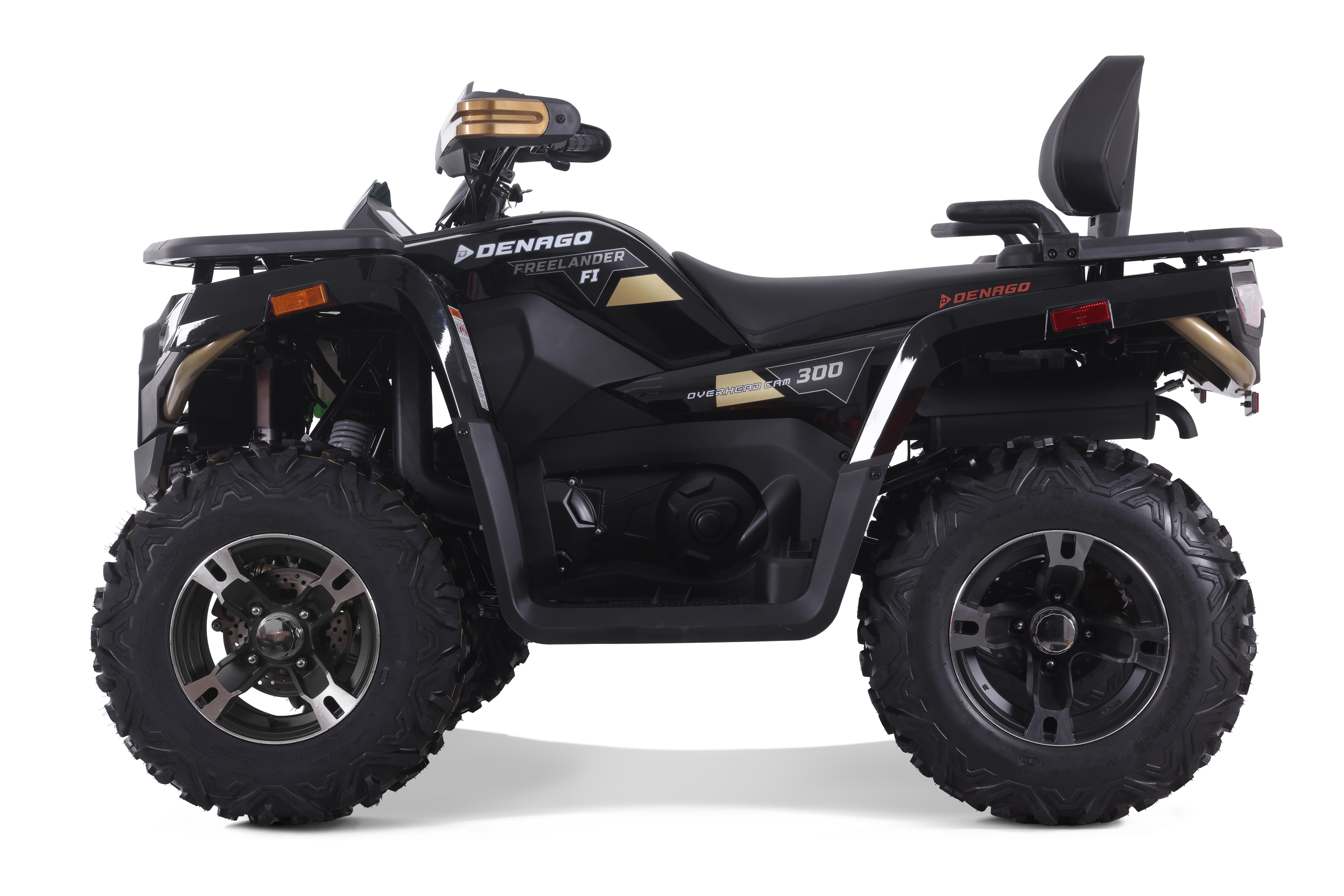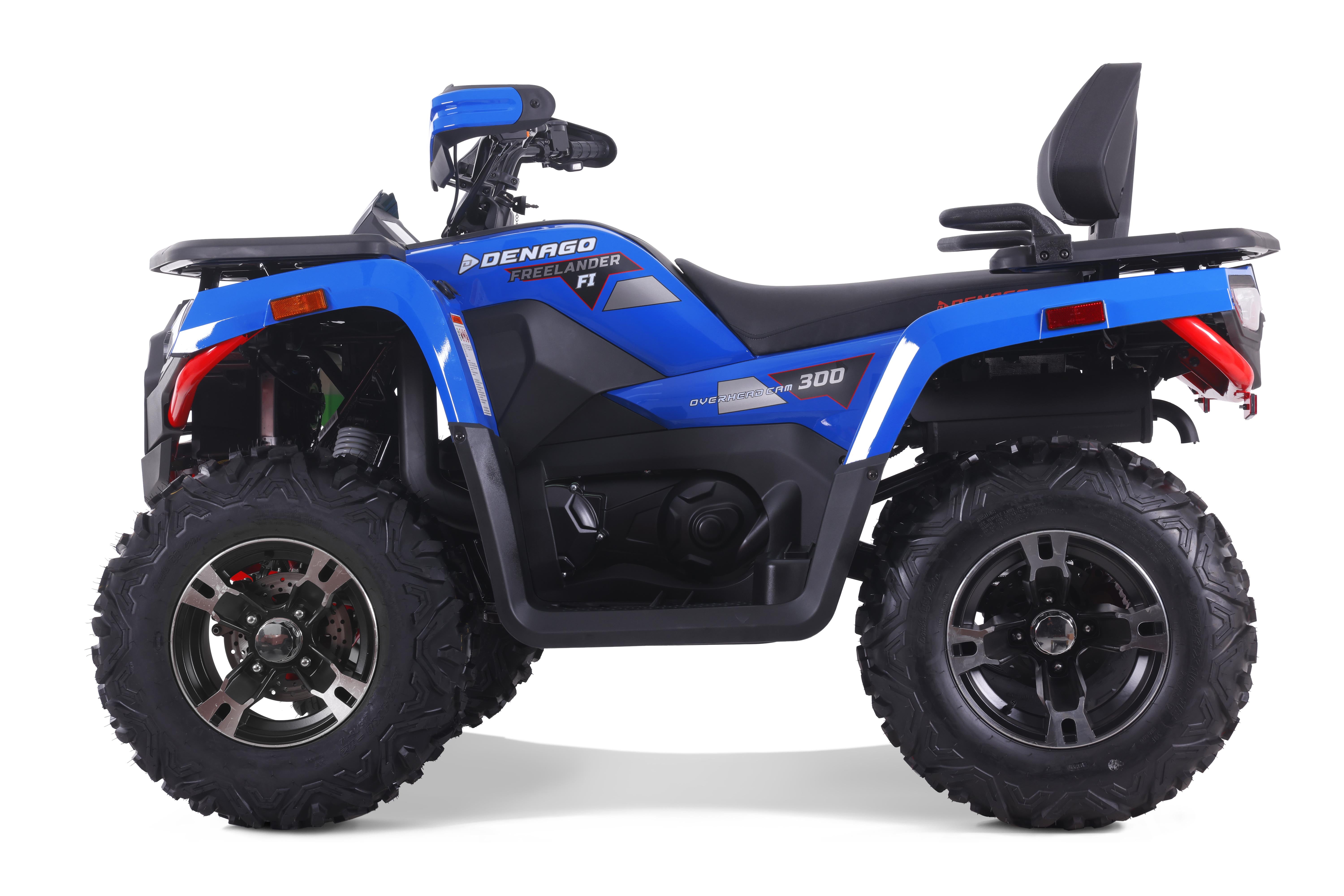 The Freelander 300FI takes ATV adventures to the next level, boasting a liquid-cooled overhead-cam engine paired to a CVT automatic transmission transmitting torque to big off road tires via a maintenance free shaft-drive system. It’s loaded with nice features like a fuel injected overhead-cam engine, double A arm front suspension with adjustable shocks, TFT instrumentation, 2-up seating, and lightweight aluminum wheels.