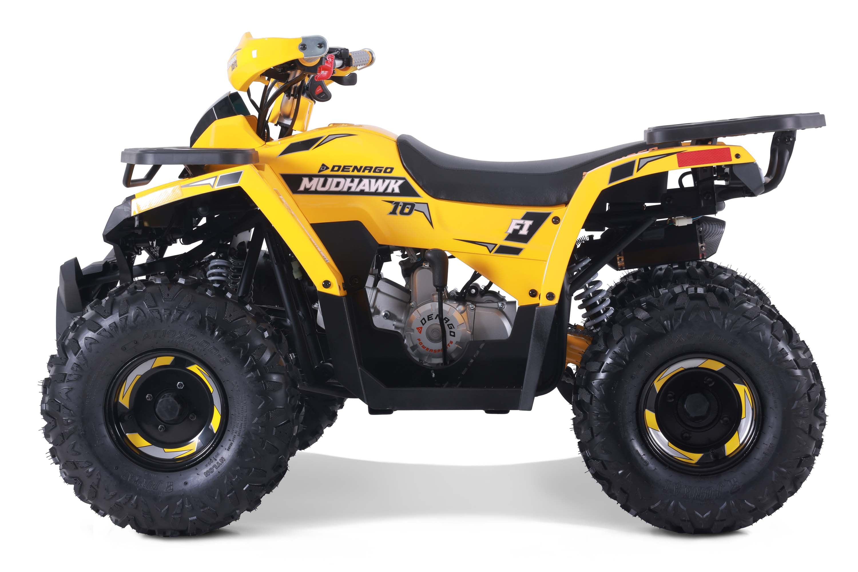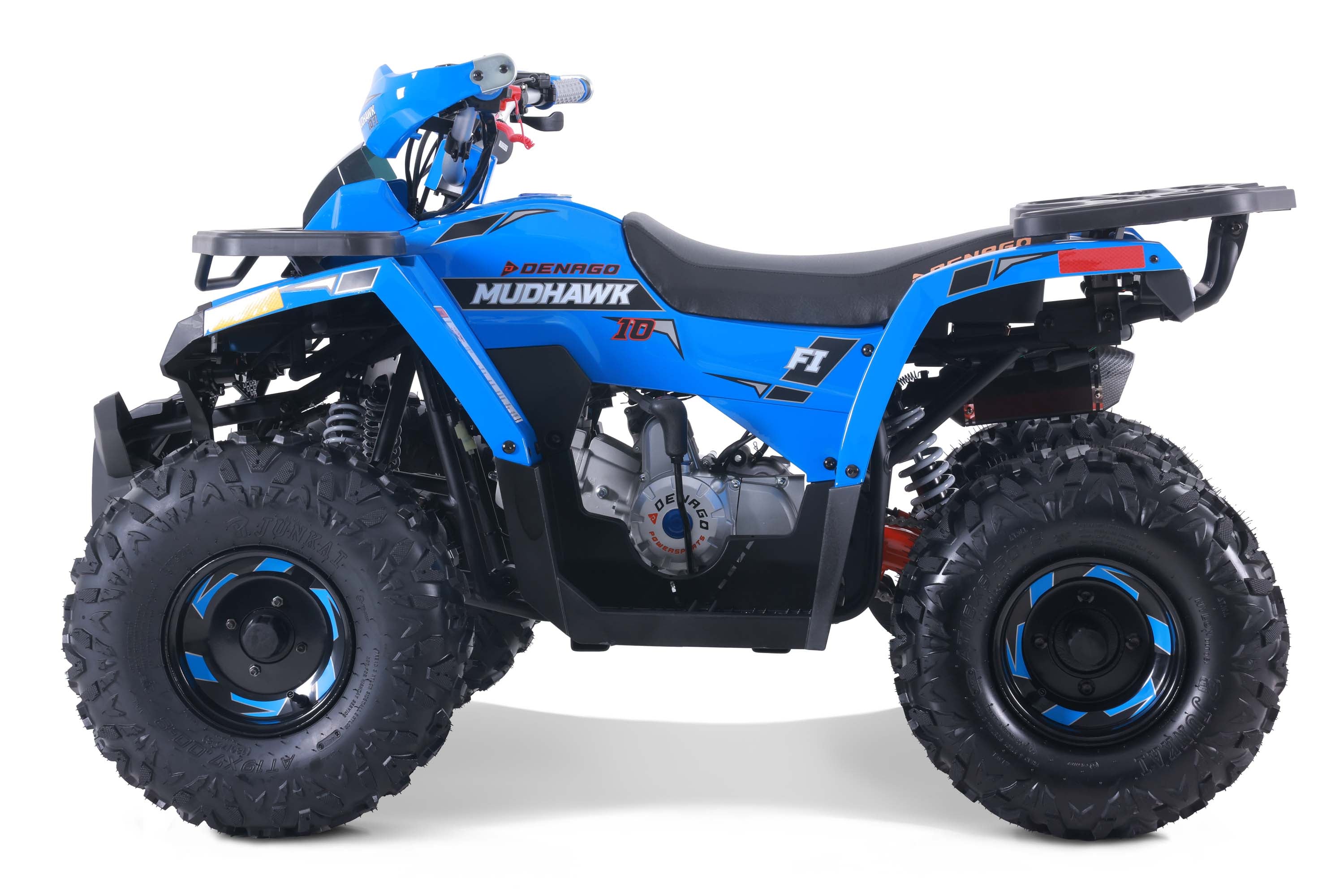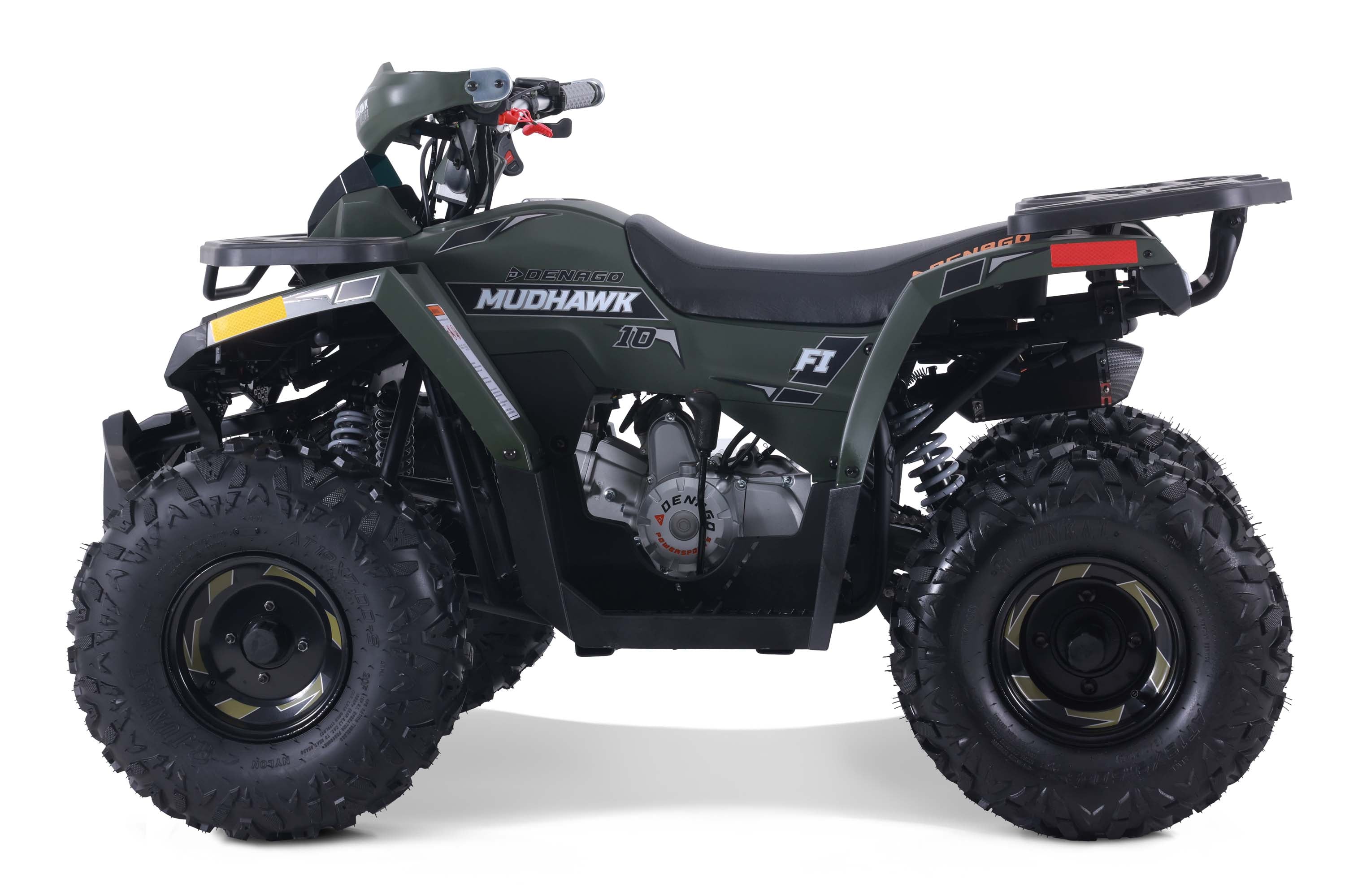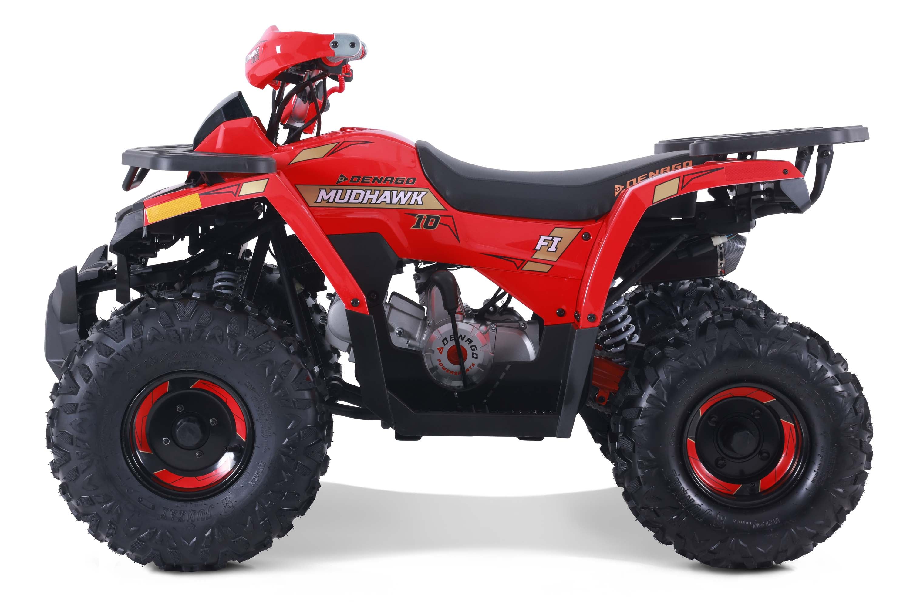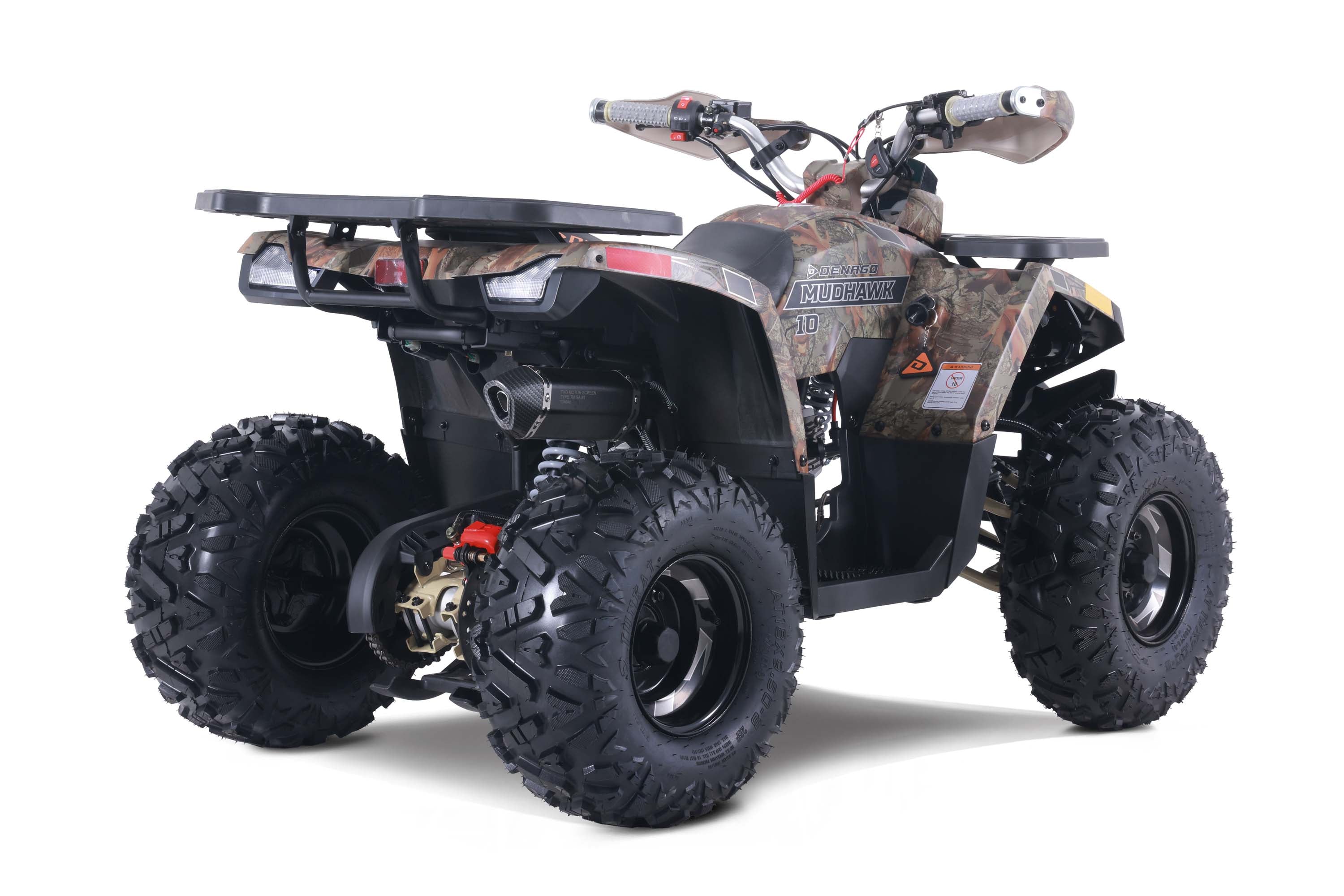 The Mudhawk 10 is the best value in Youth-10 ATVs, with a fuel-injected 120cc engine, electric starting, independent double A-arm front suspension with adjustable shocks, and front and rear cargo racks. It’s available in 6 colors.