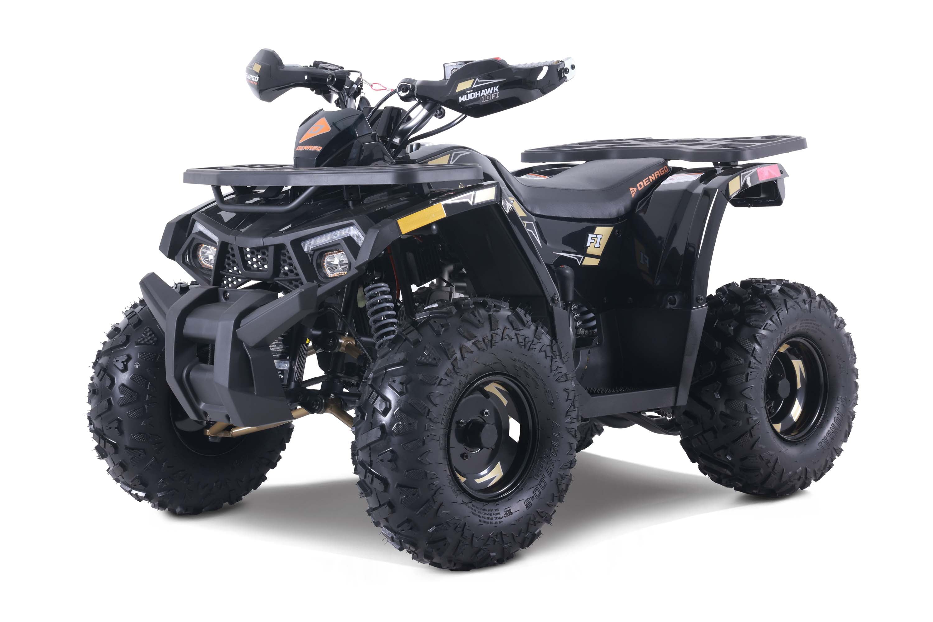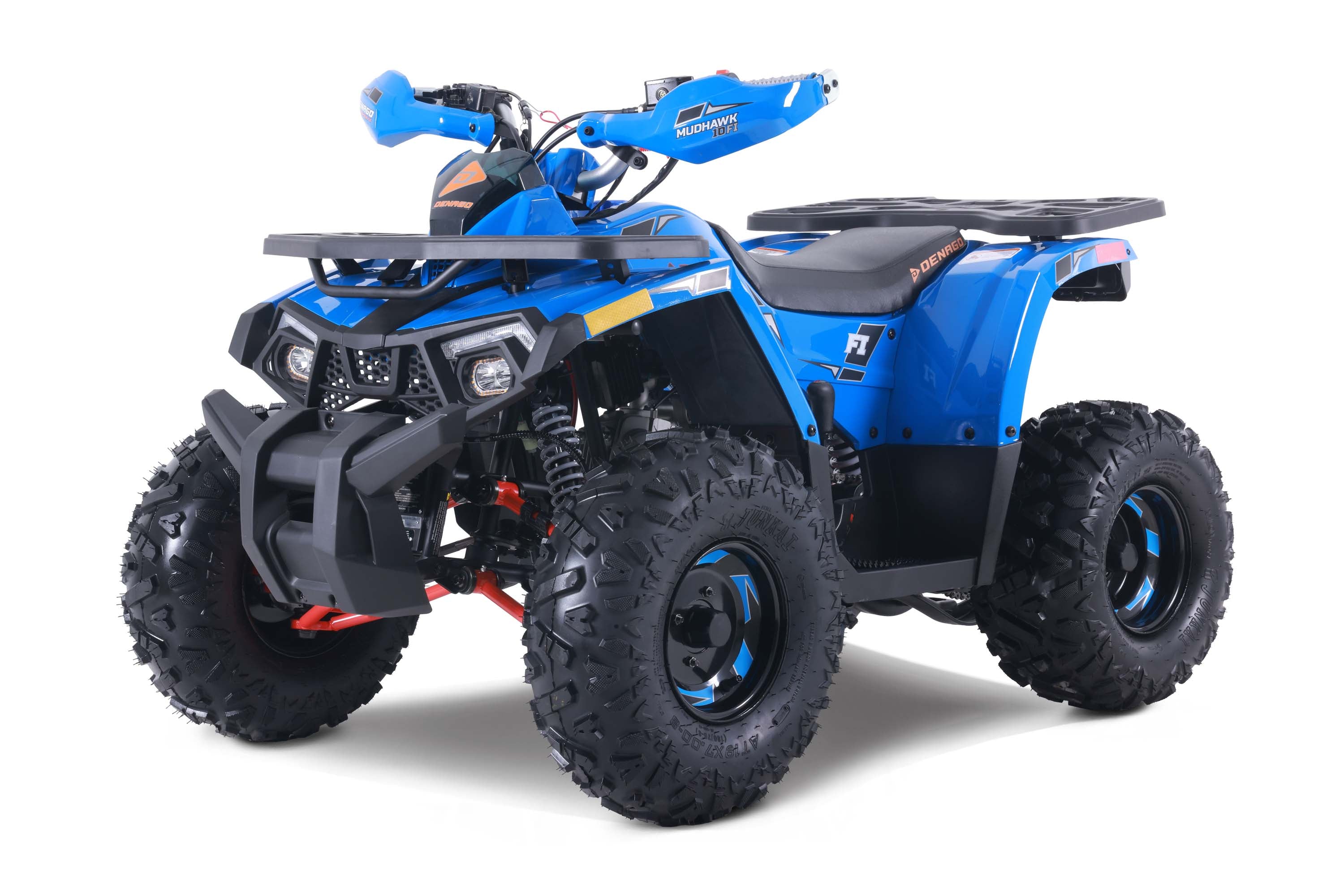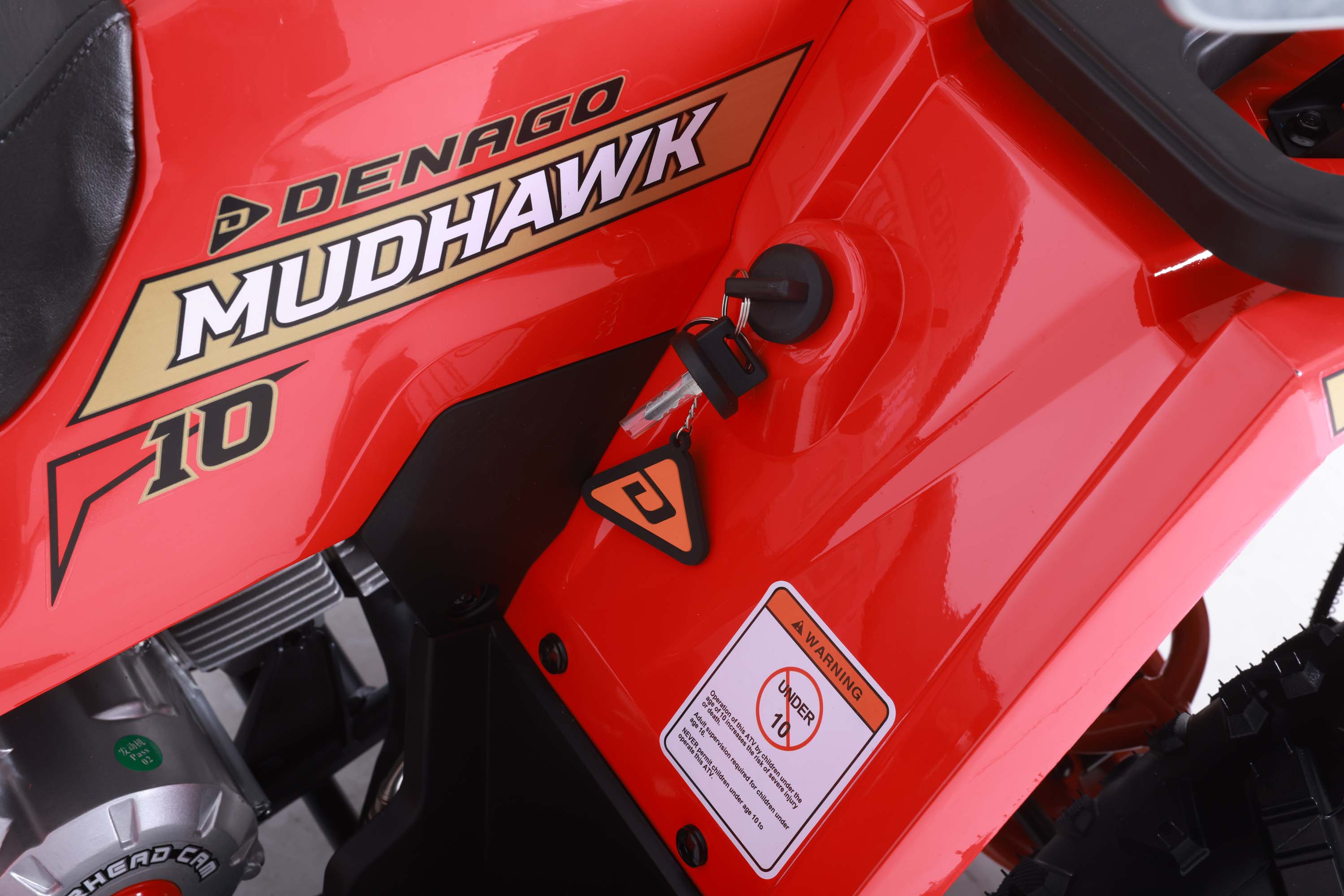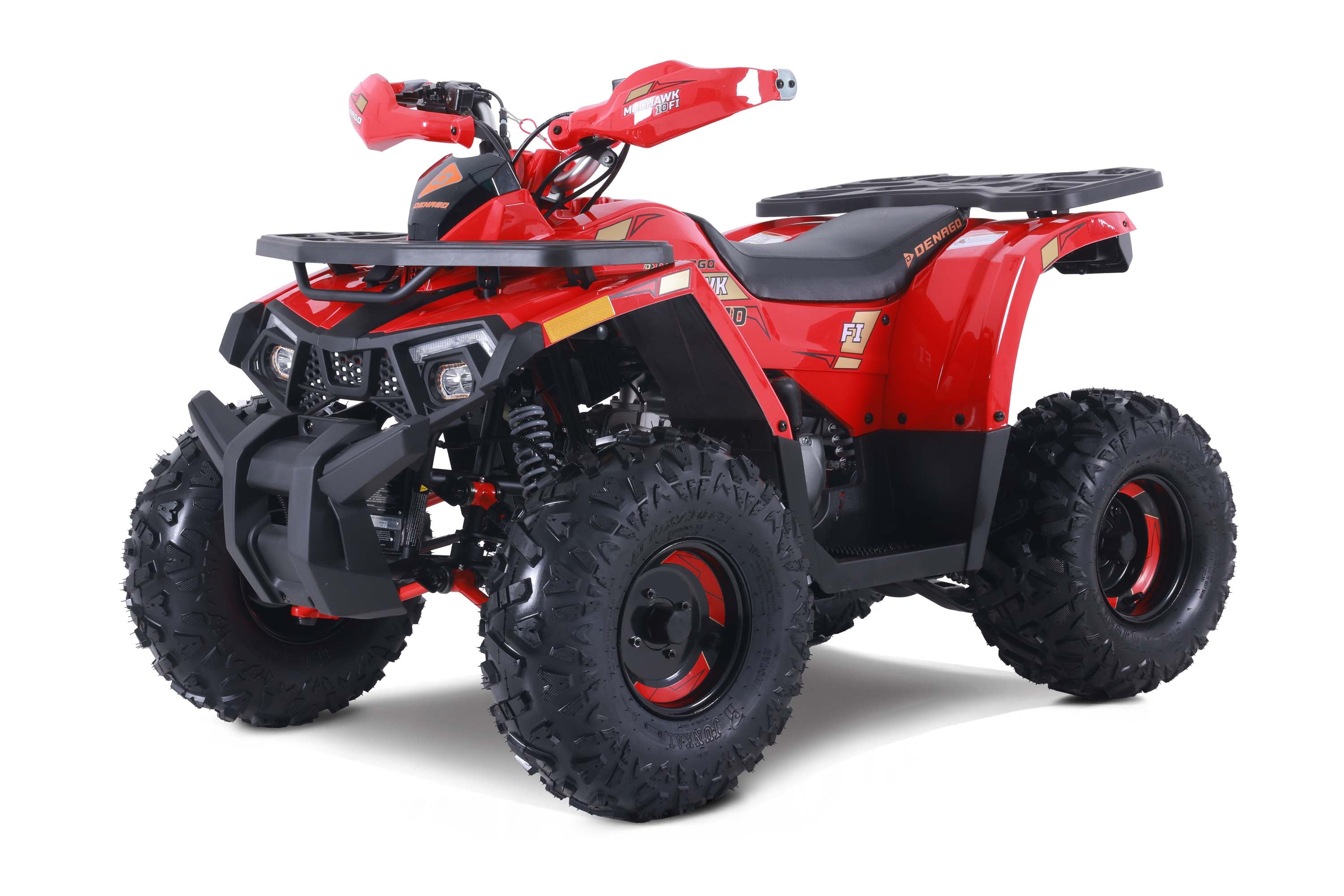 The Mudhawk 10 is the best value in Youth-10 ATVs, with a fuel-injected 120cc engine, electric starting, independent double A-arm front suspension with adjustable shocks, and front and rear cargo racks. It’s available in 6 colors.