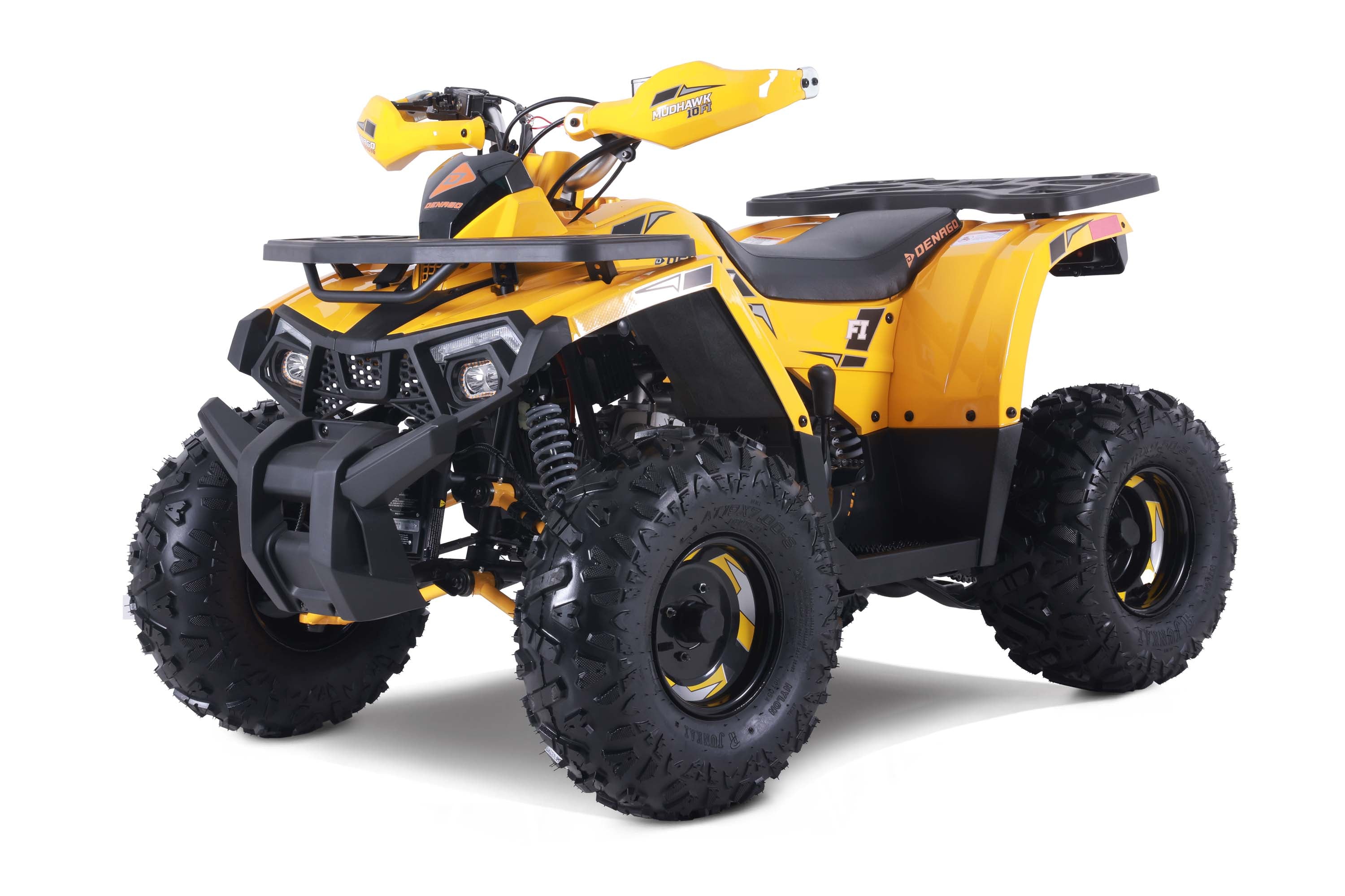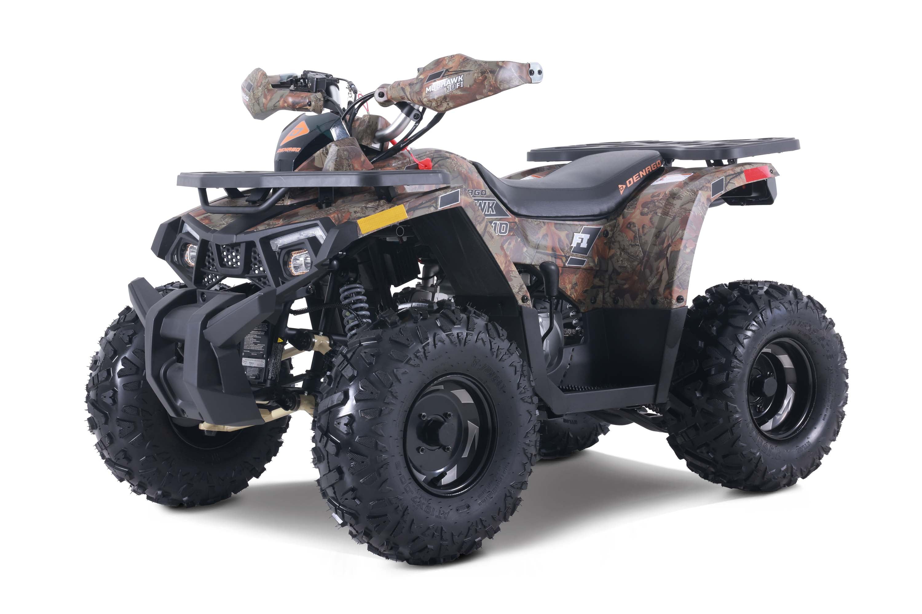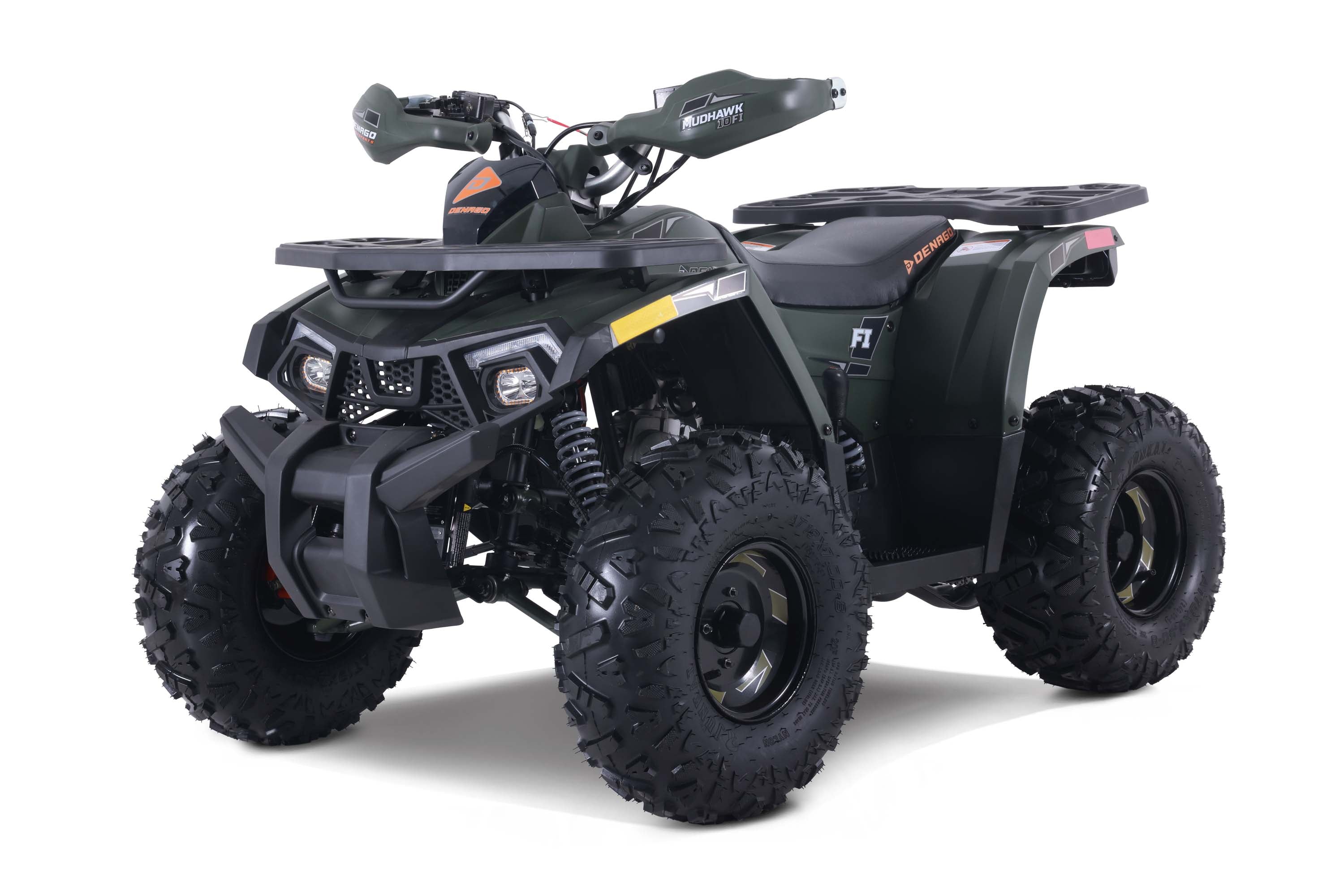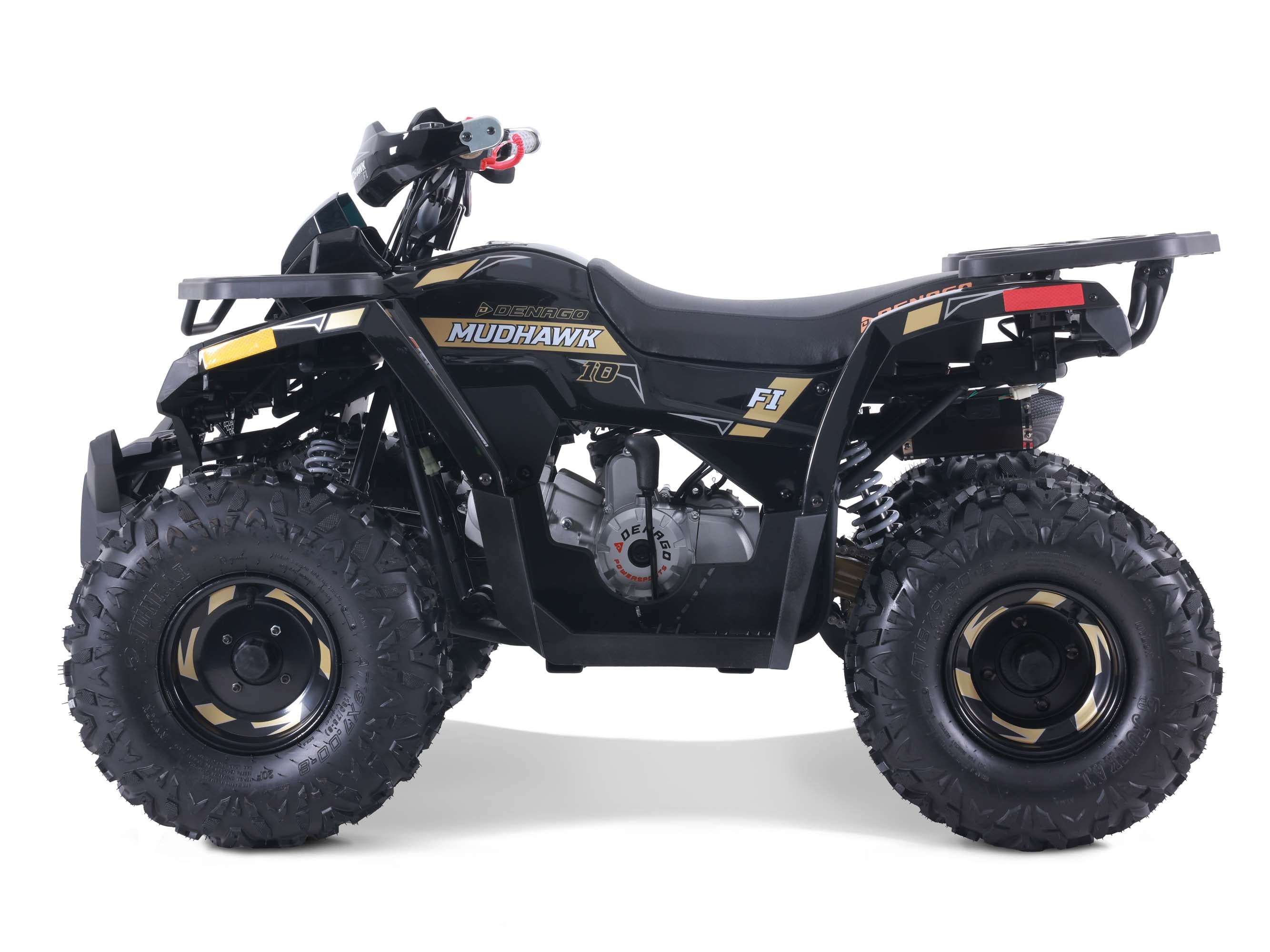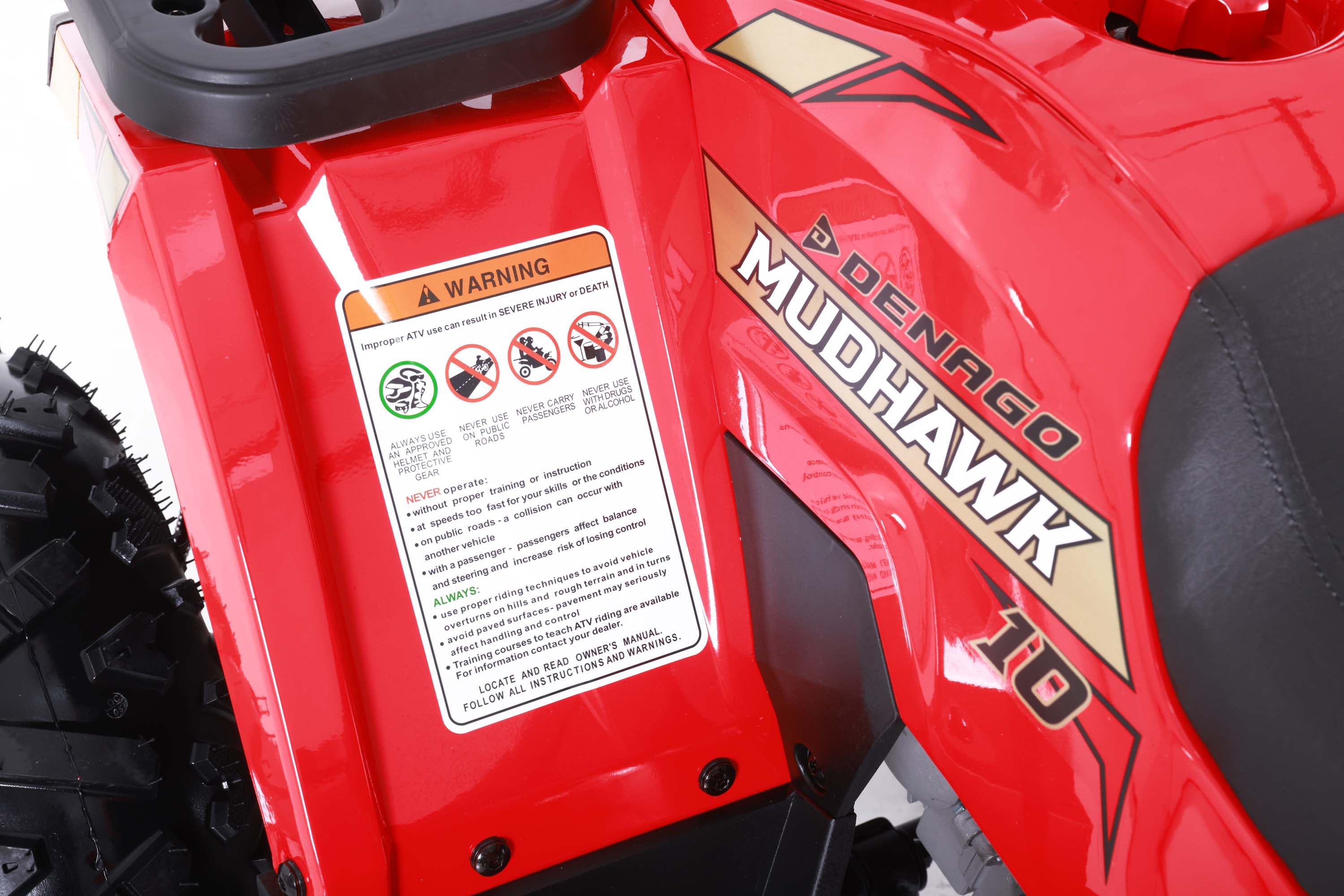 The Mudhawk 10 is the best value in Youth-10 ATVs, with a fuel-injected 120cc engine, electric starting, independent double A-arm front suspension with adjustable shocks, and front and rear cargo racks. It’s available in 6 colors.