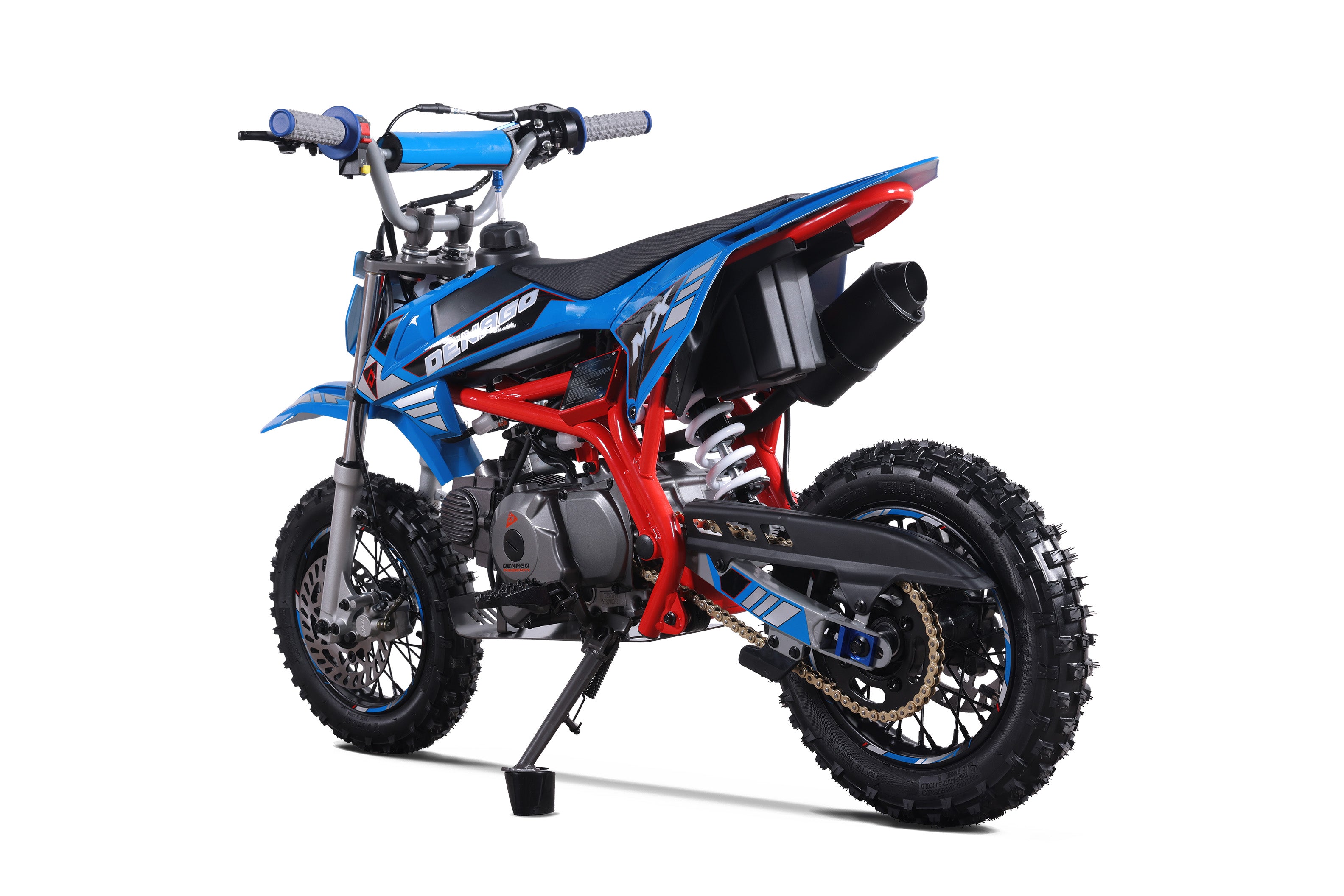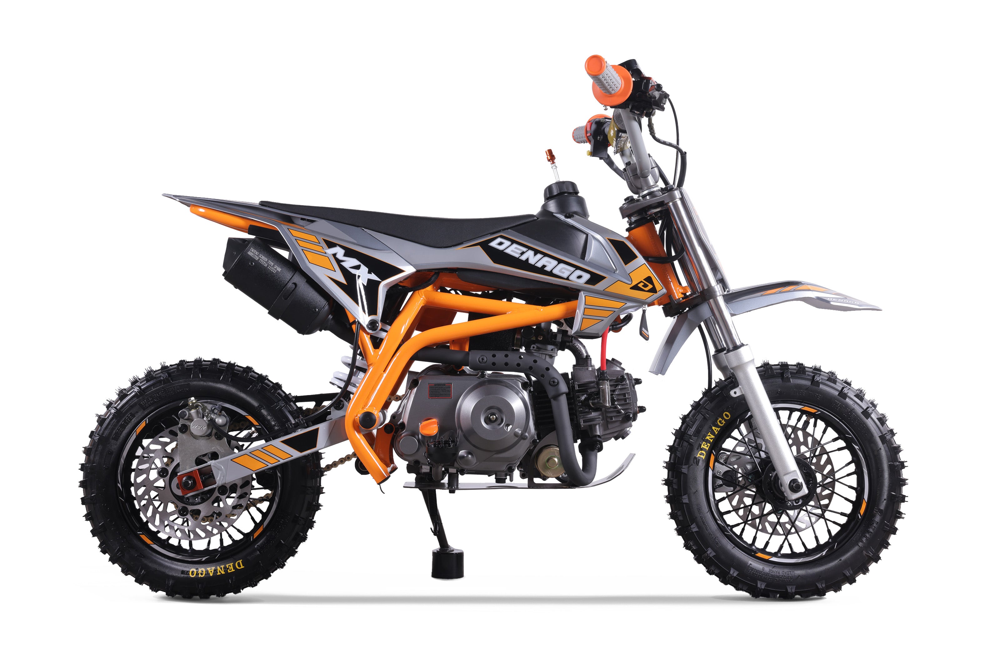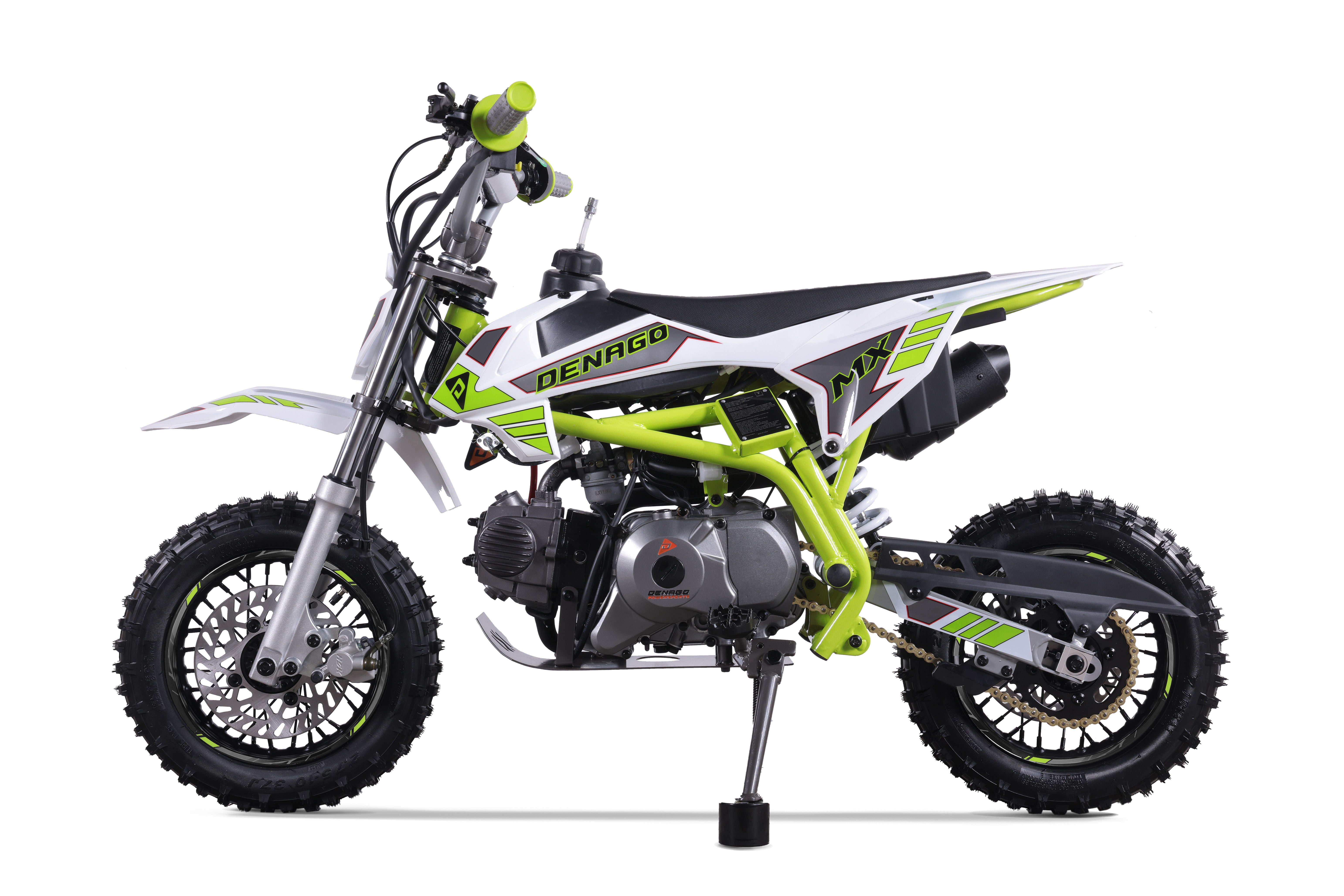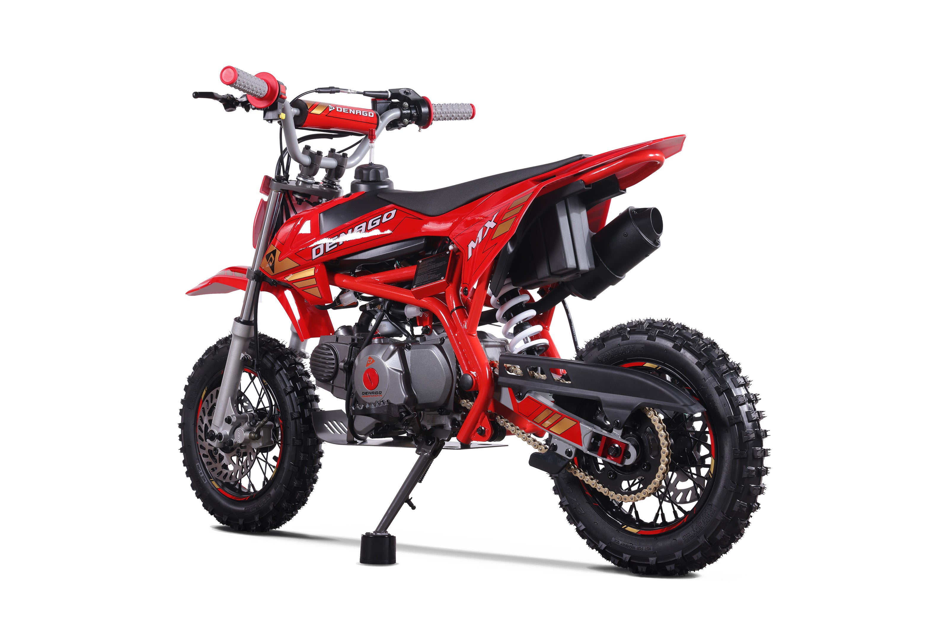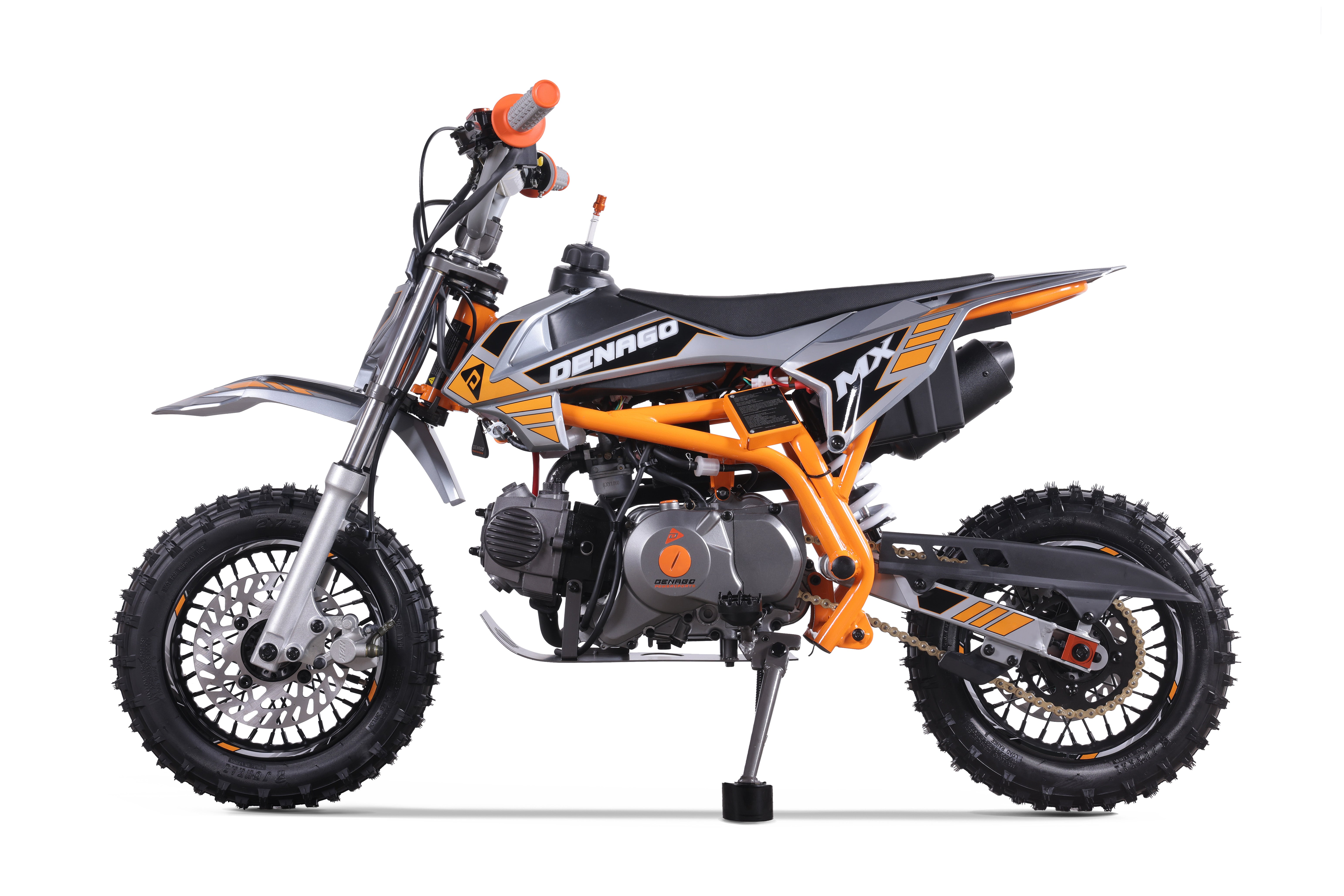 The MX’s racy motocross styling combines with its distinctive tubular-steel chassis to create the most attractive entry-level dirt bike on the market. And with six color options – more than any other OEM – your kids can choose the color they like best. The Denago MX has more features and is priced nicer than its competitors in this important junior-level dirt bike class.