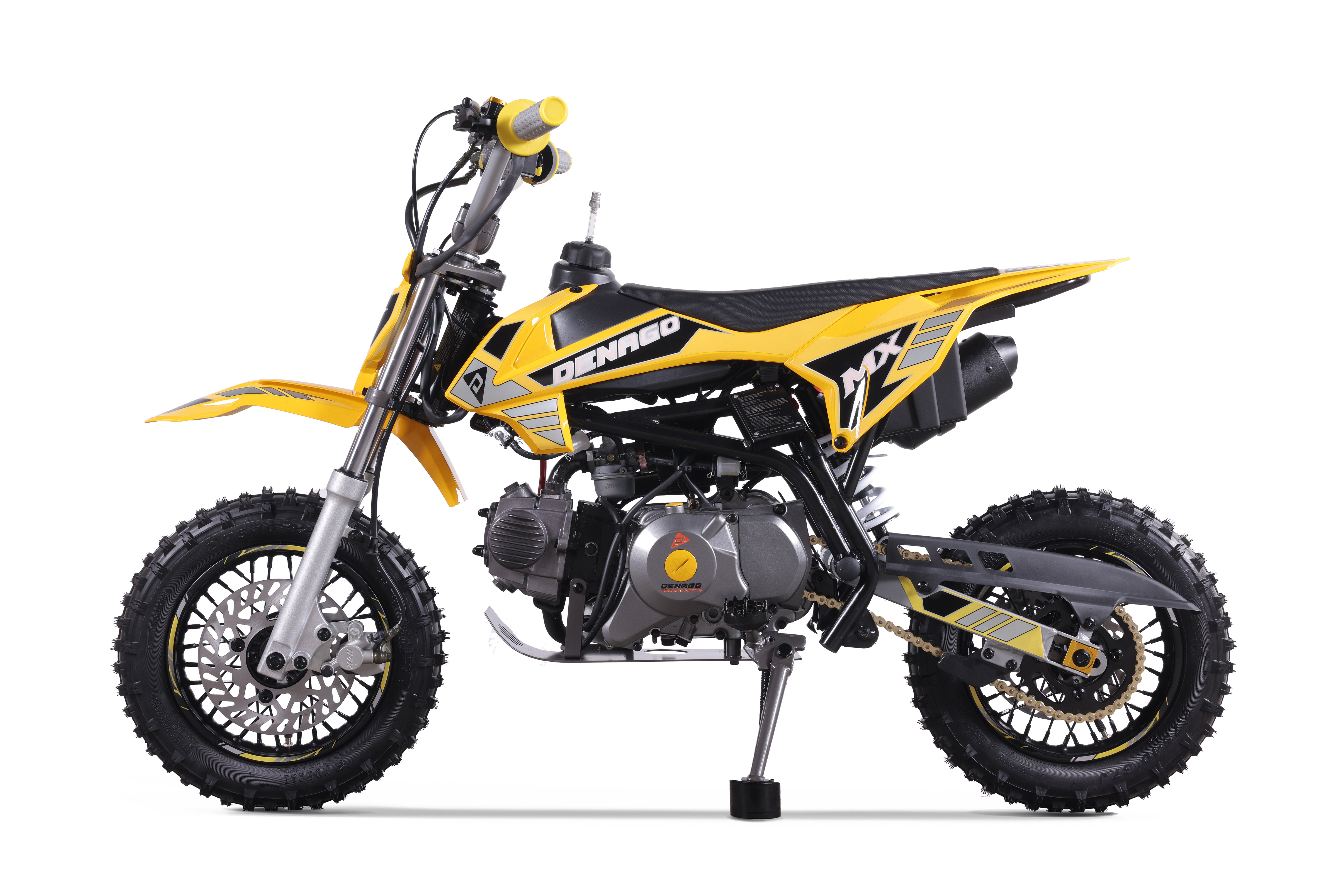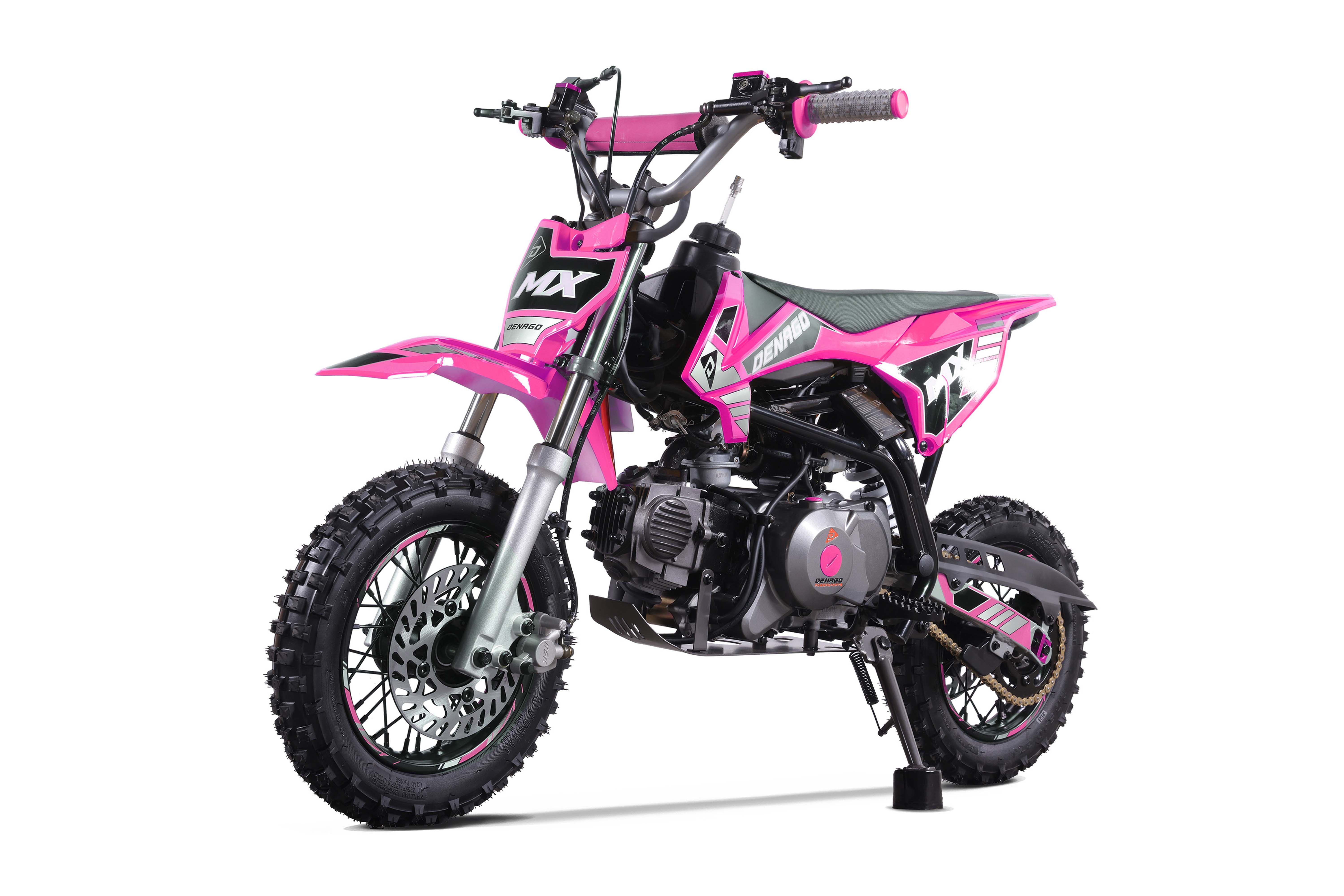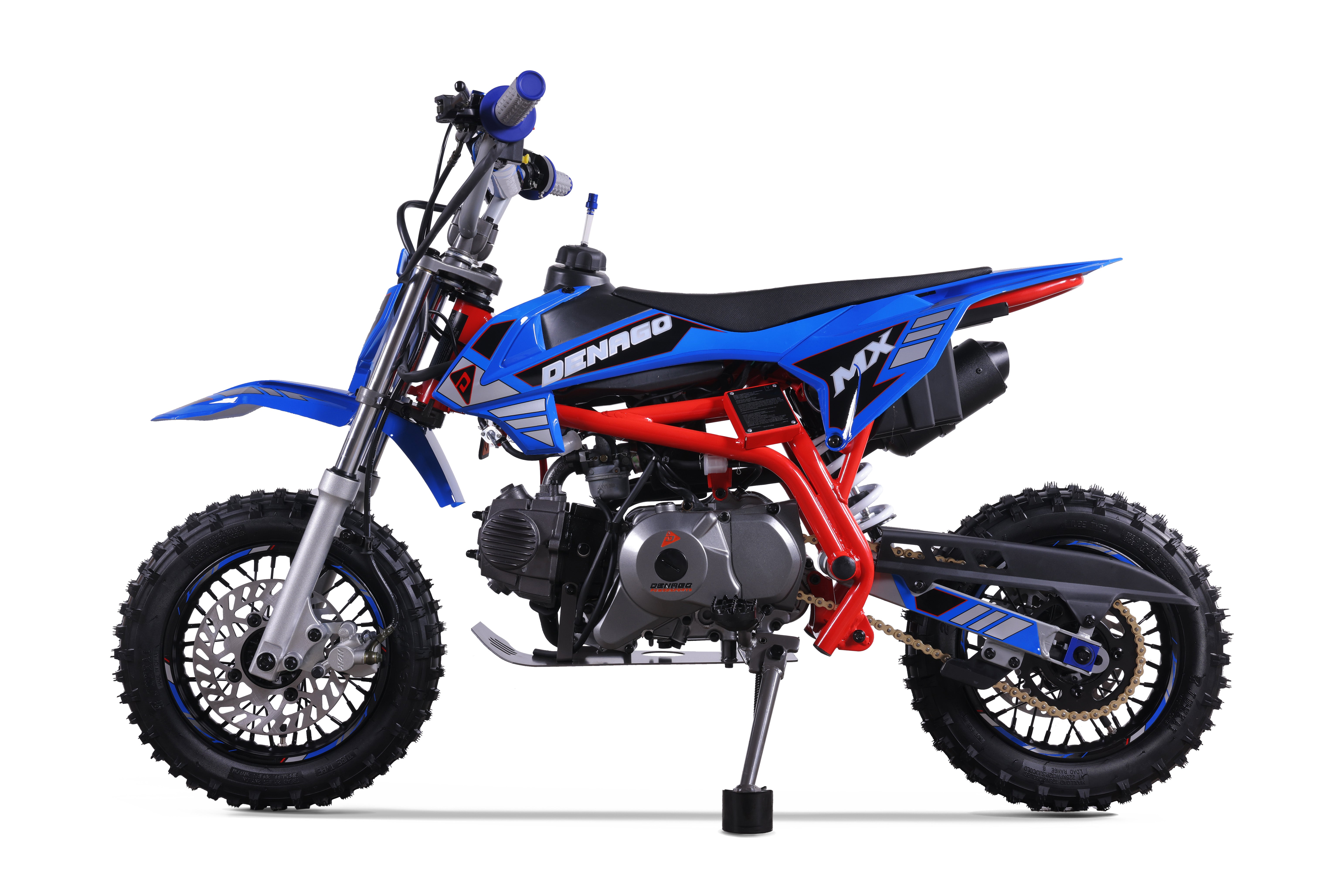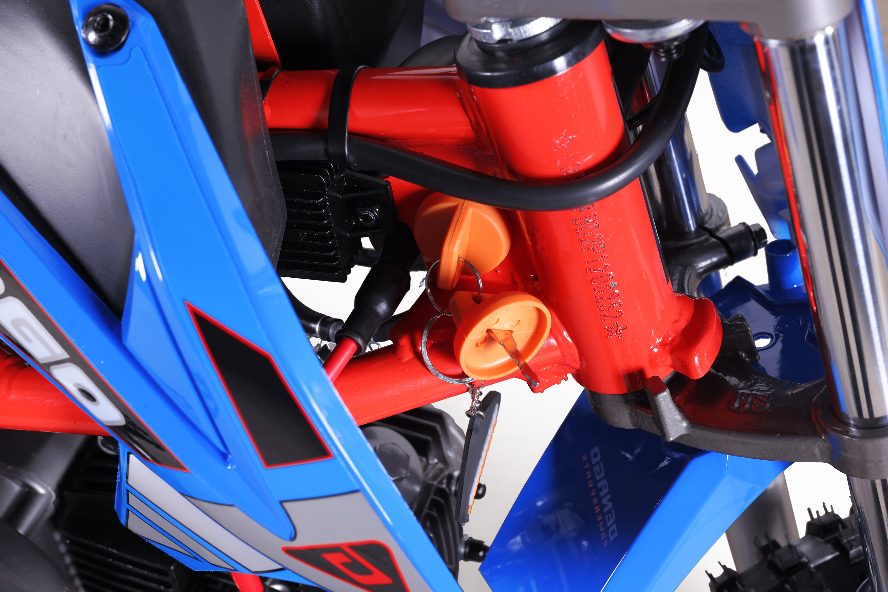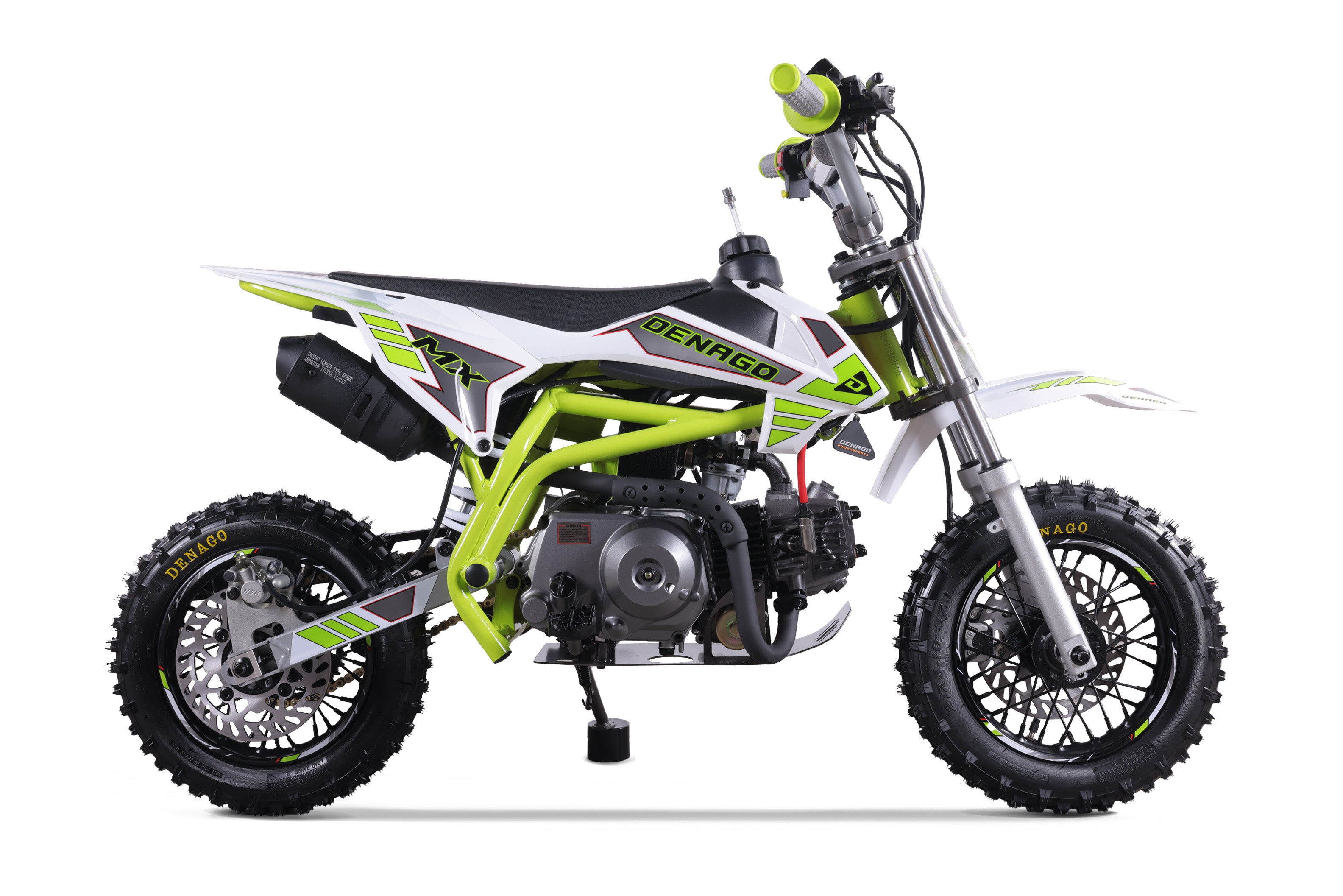 The MX’s racy motocross styling combines with its distinctive tubular-steel chassis to create the most attractive entry-level dirt bike on the market. And with six color options – more than any other OEM – your kids can choose the color they like best. The Denago MX has more features and is priced nicer than its competitors in this important junior-level dirt bike class.