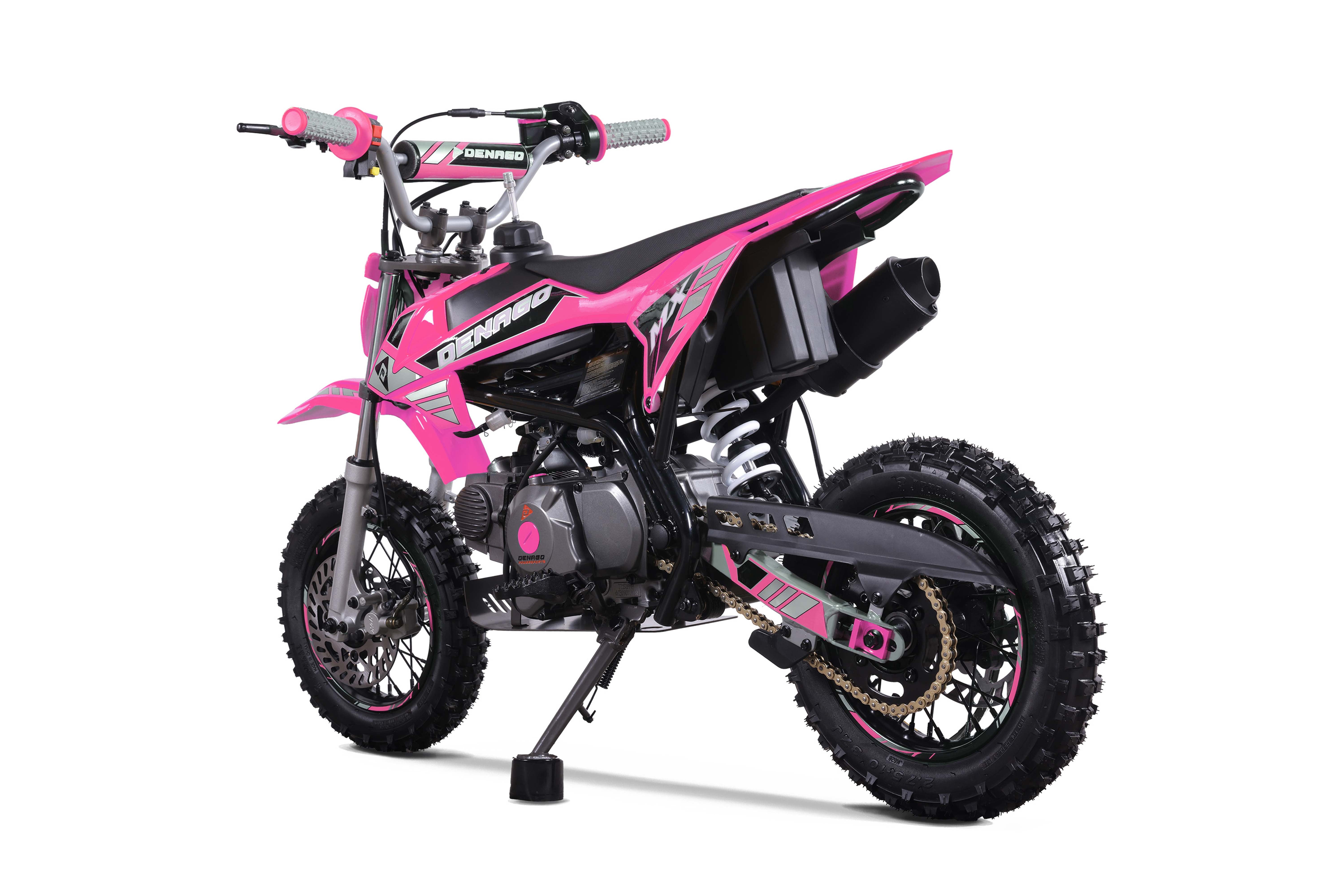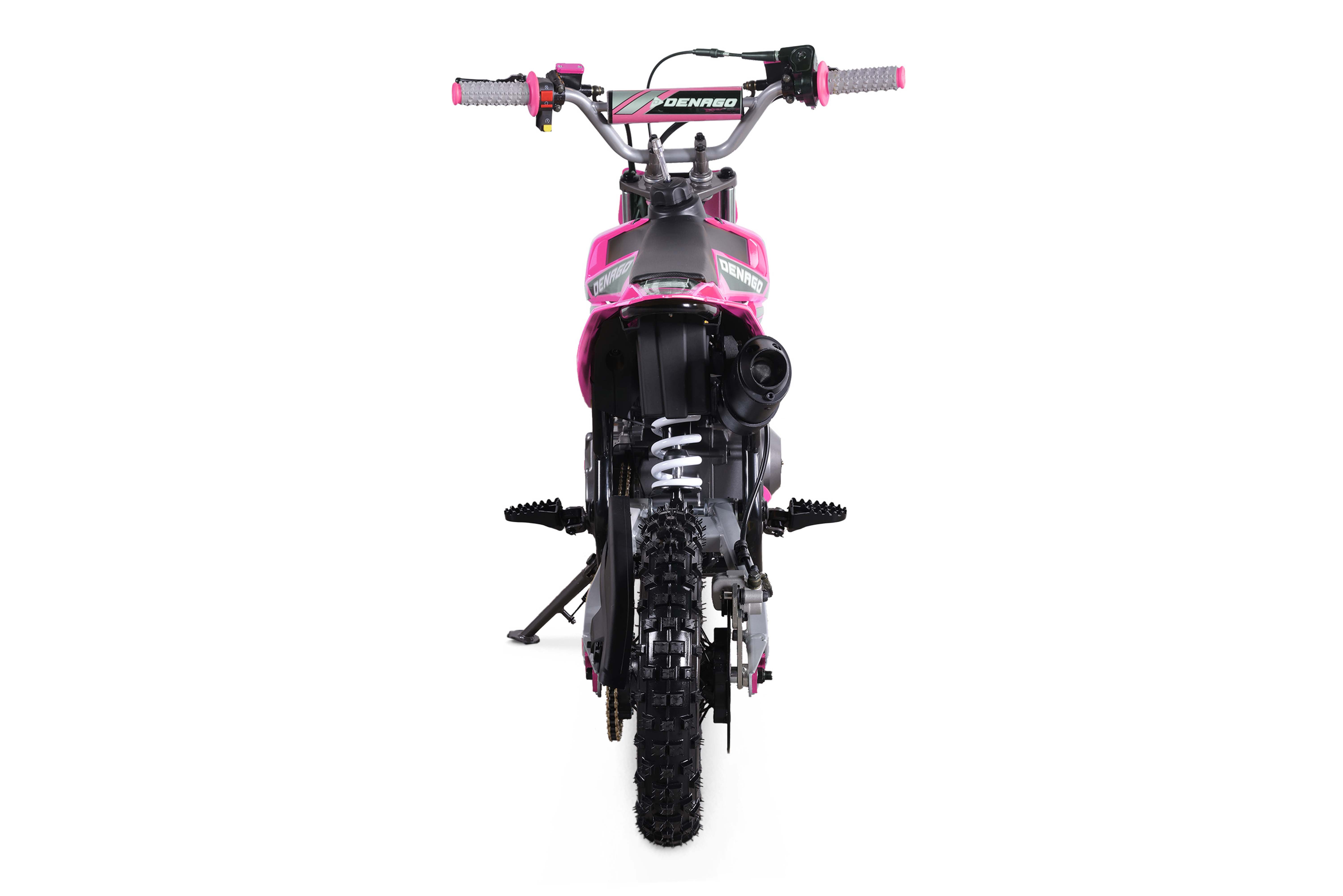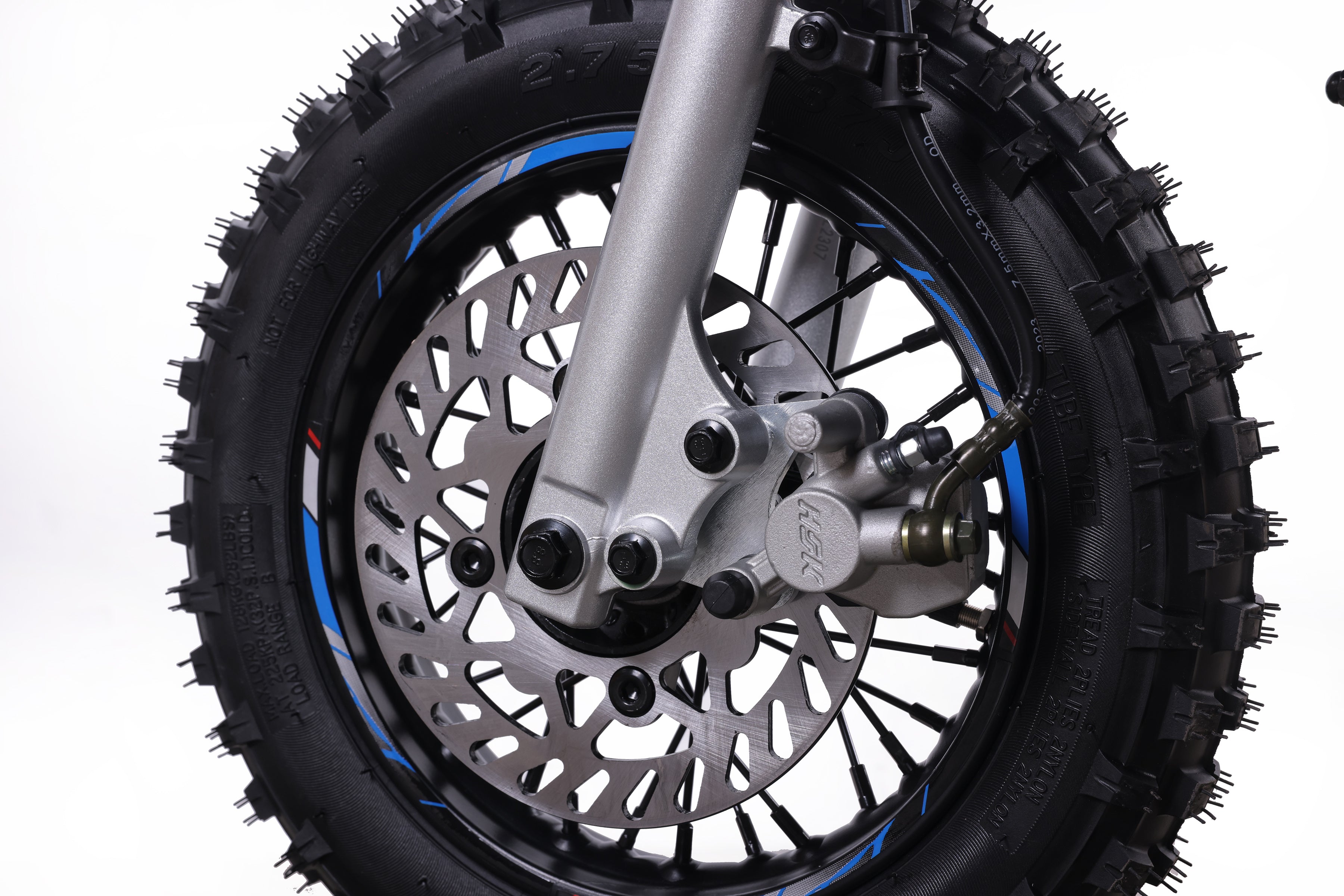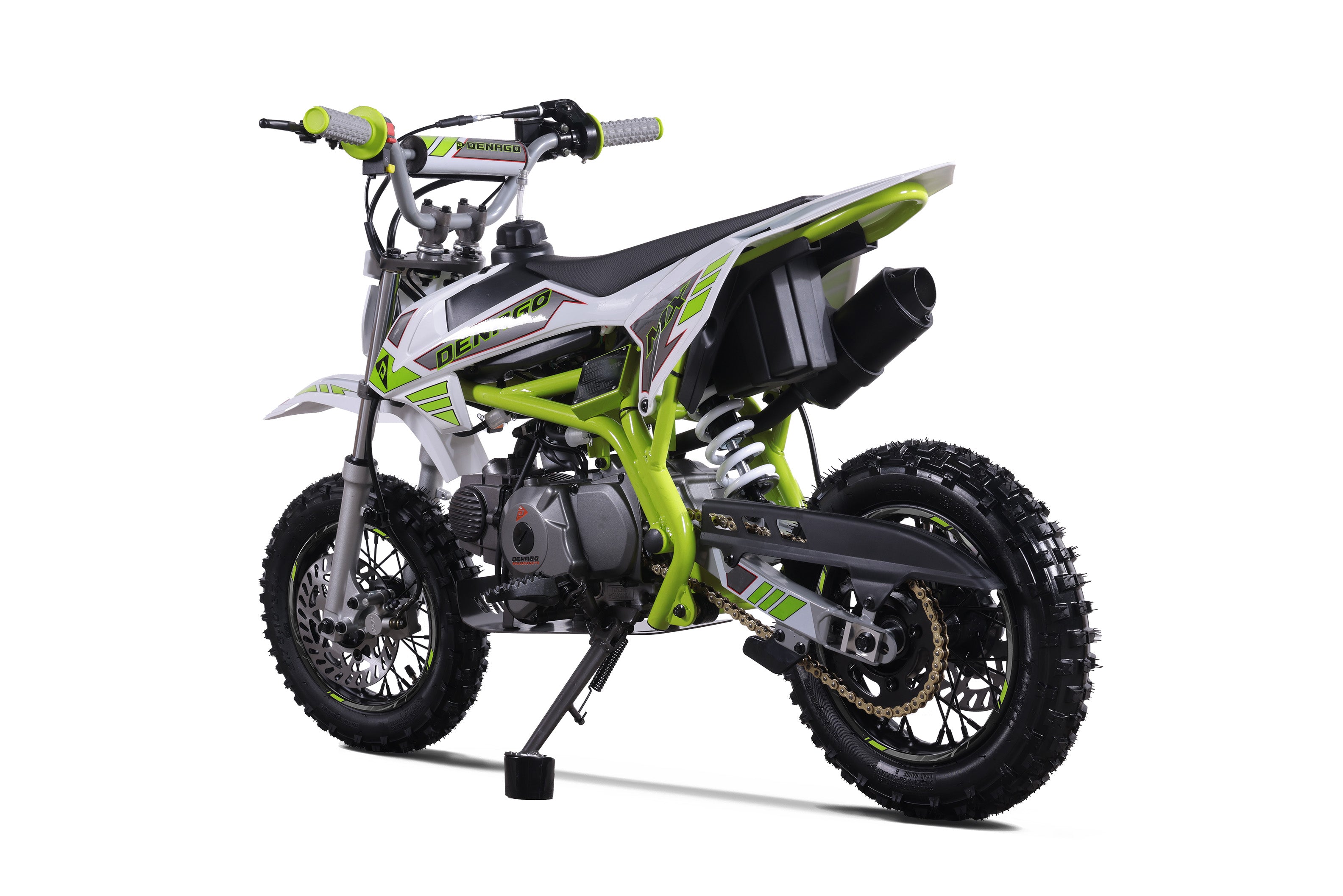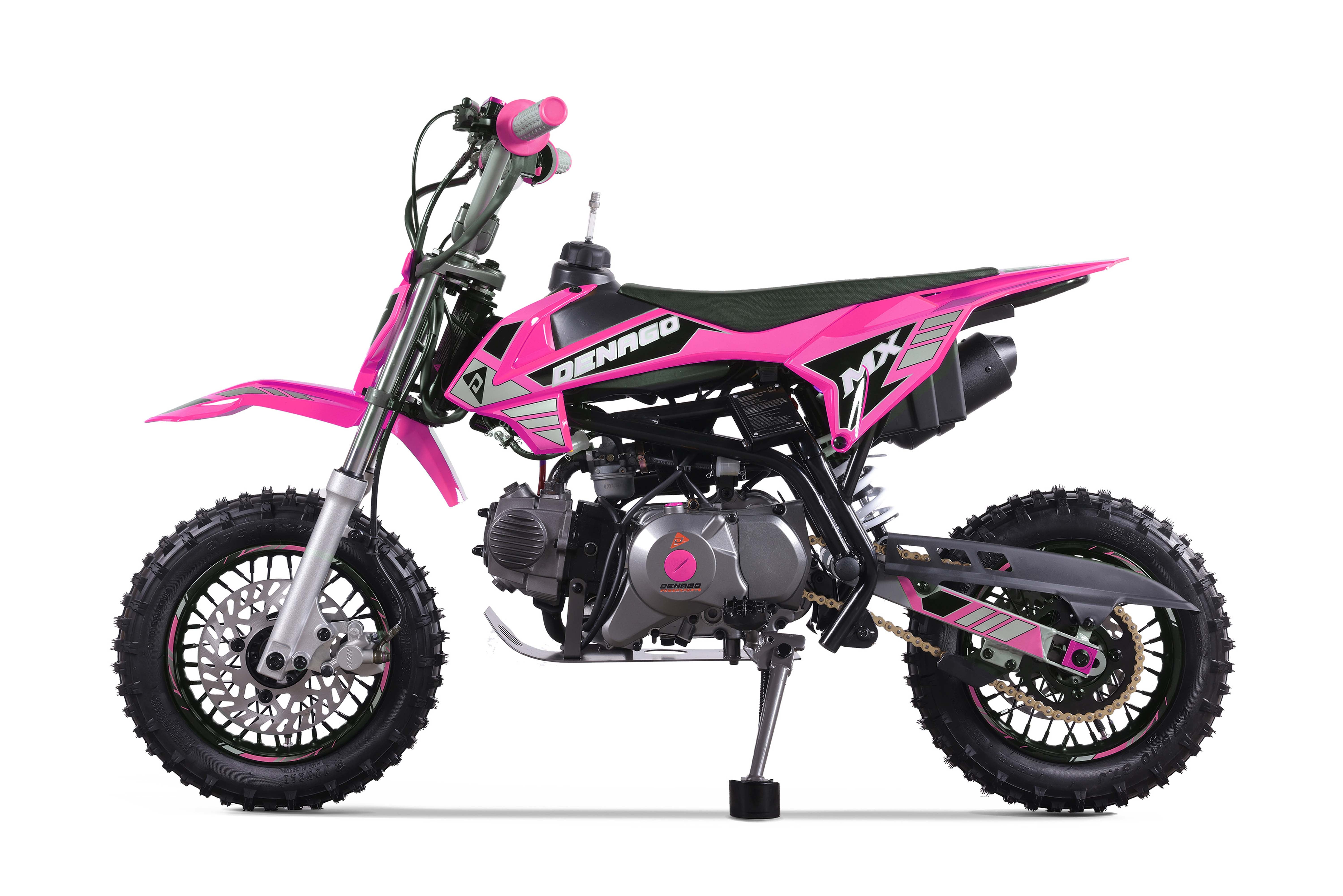 The MX’s racy motocross styling combines with its distinctive tubular-steel chassis to create the most attractive entry-level dirt bike on the market. And with six color options – more than any other OEM – your kids can choose the color they like best. The Denago MX has more features and is priced nicer than its competitors in this important junior-level dirt bike class.