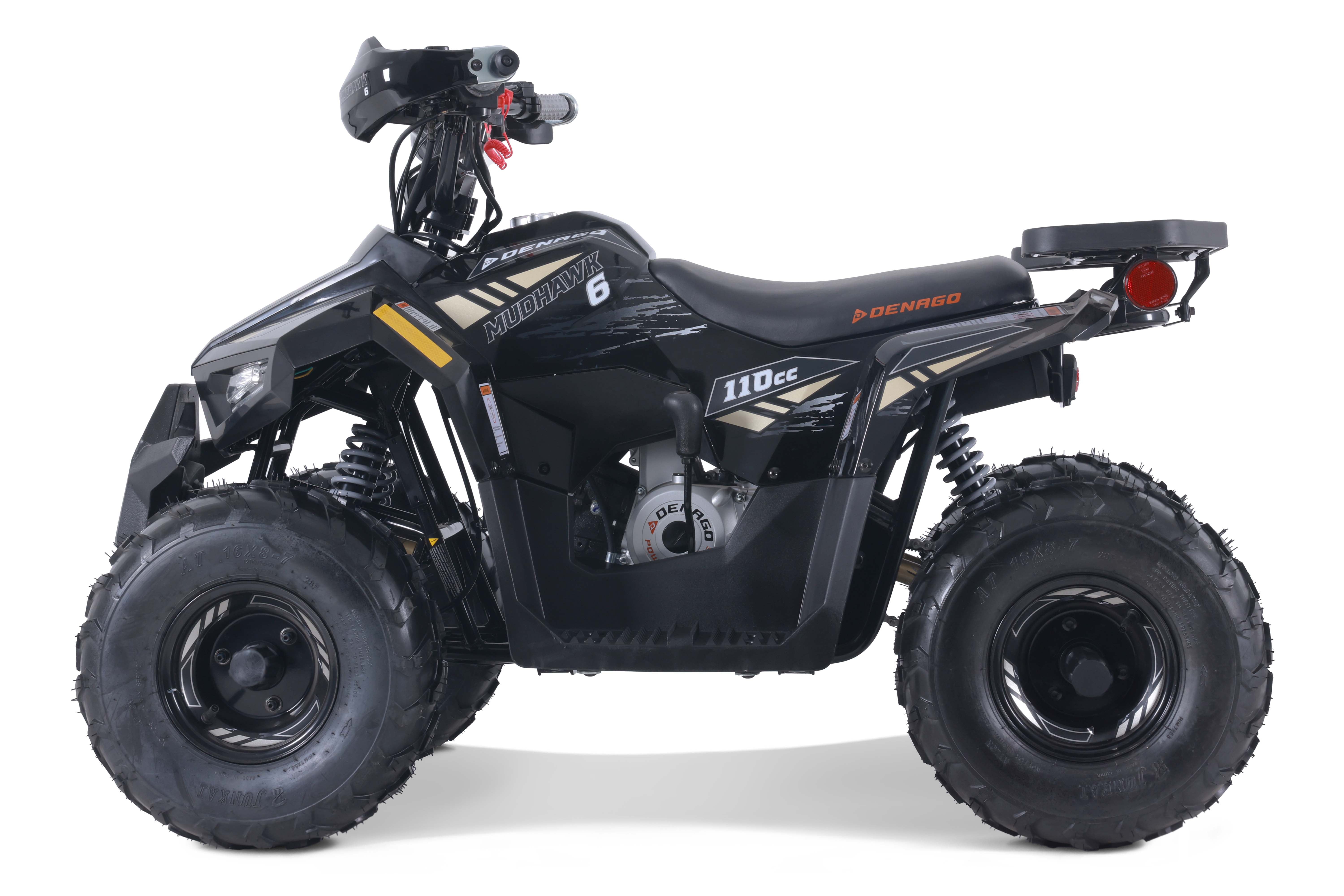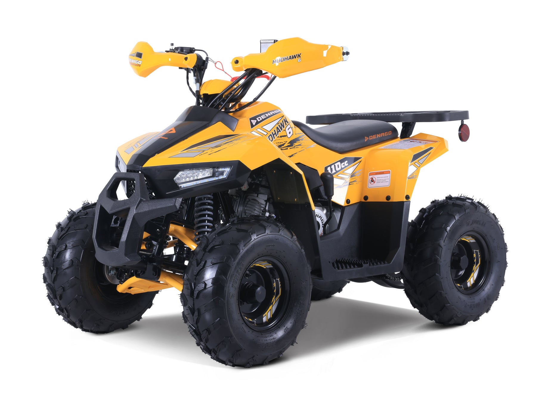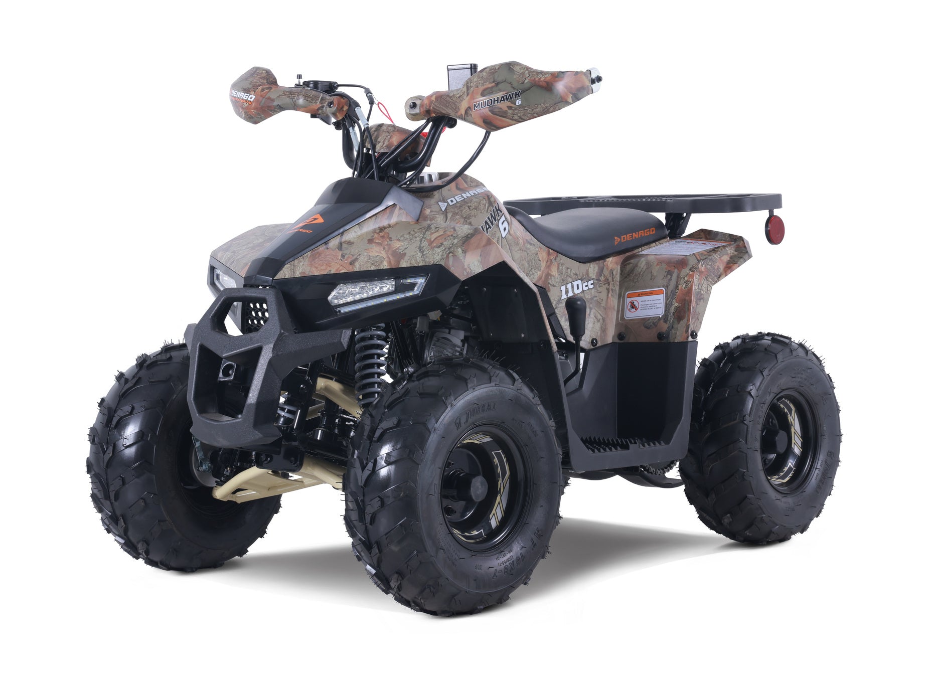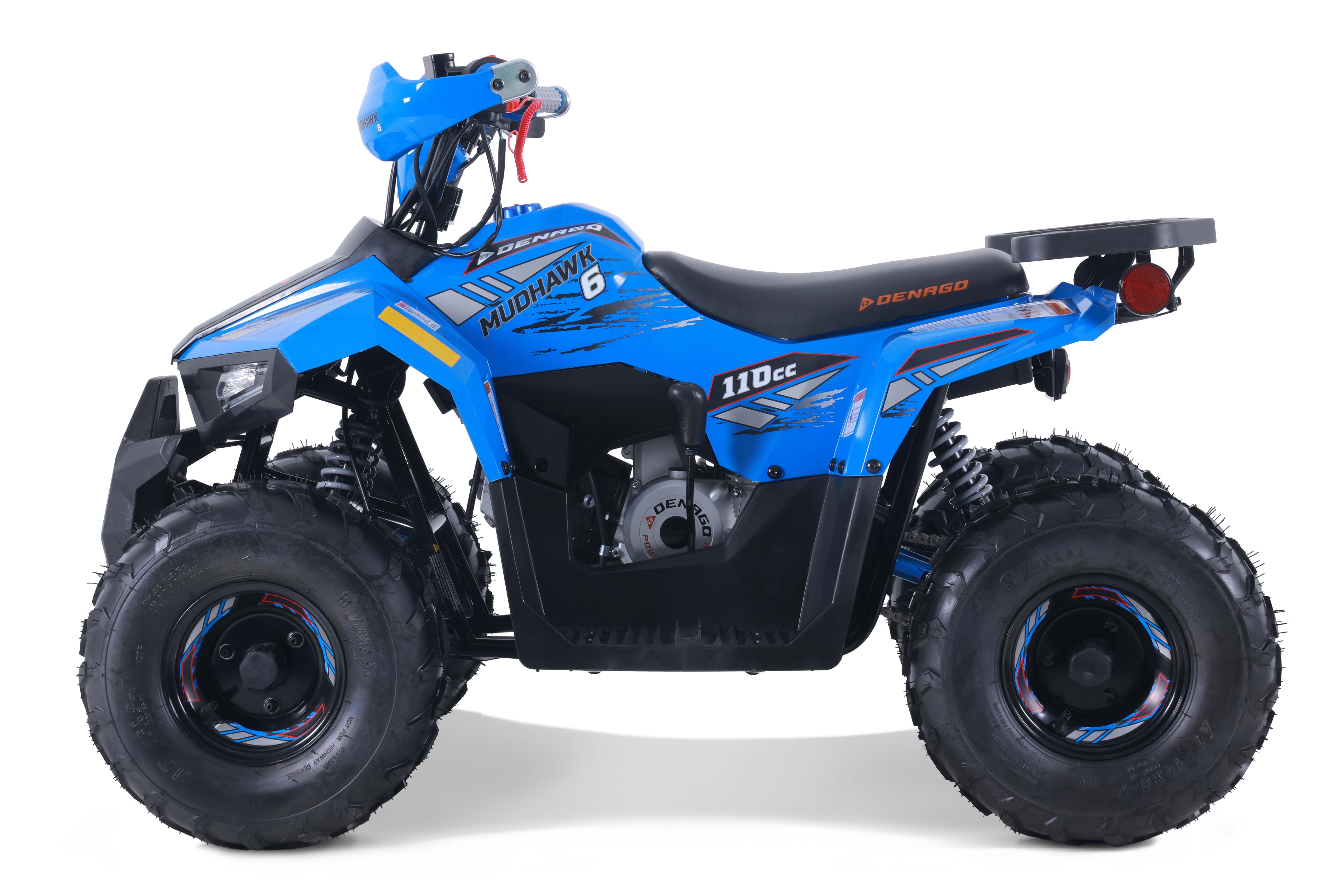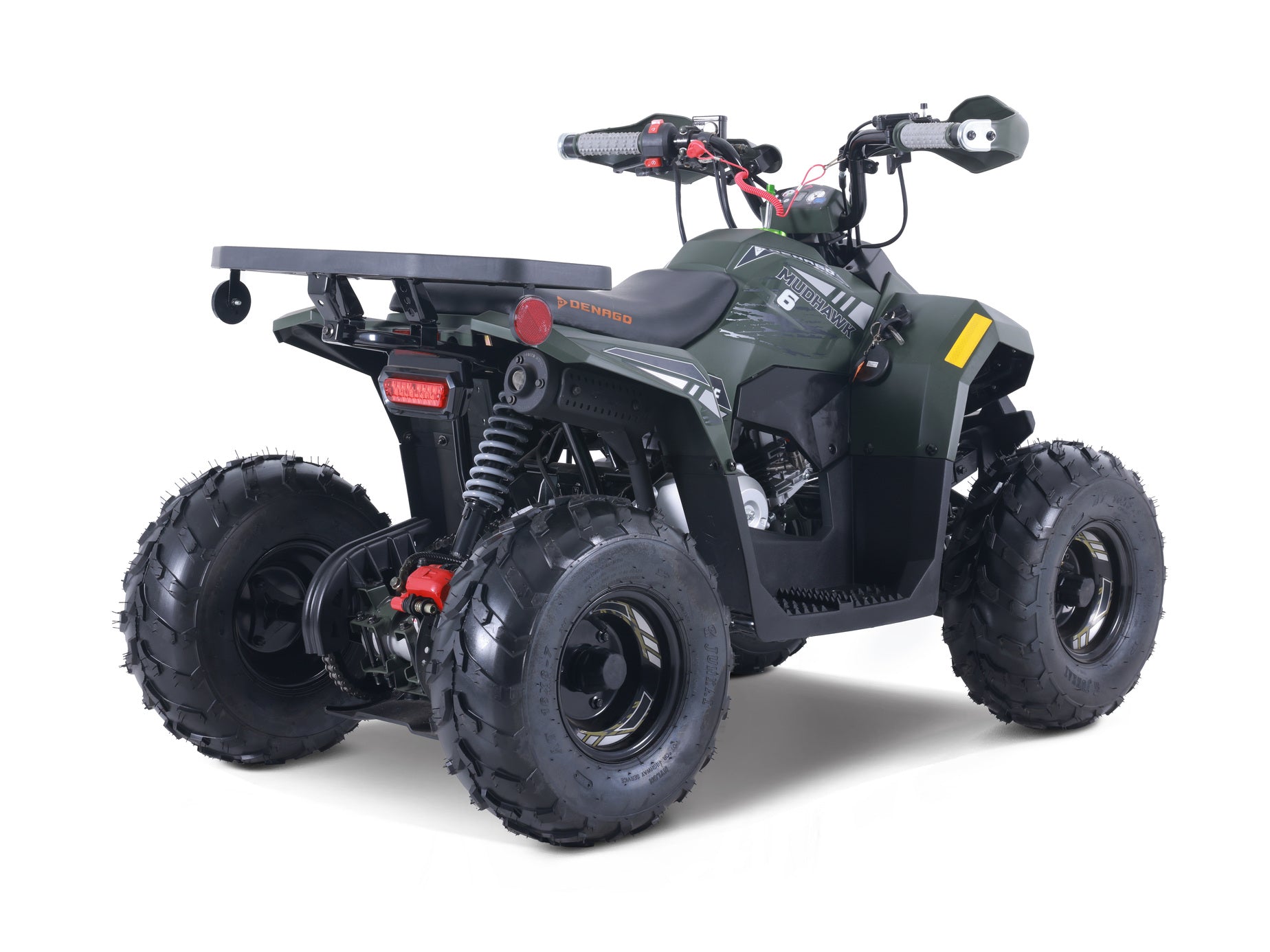 Hook your kids on a lifetime of adventure with the amazingly affordable Mudhawk 6. Rated for riders aged six and up, the Mudhawk 6 features the largest engine in its class and an automatic transmission that allows riders to go forward and reverse without using a clutch lever. Dual A-arm front suspension with adjustable shocks provide excellent bump control and stability. Safety is a priority at Denago, so the Mudhawk 6 includes a throttle limiter and remote shut-off to ensure a fun experience while young riders build confidence. The Mudhawk 6 is available in 7 different colors, including camo and pink, to suit the preferences of every young rider!