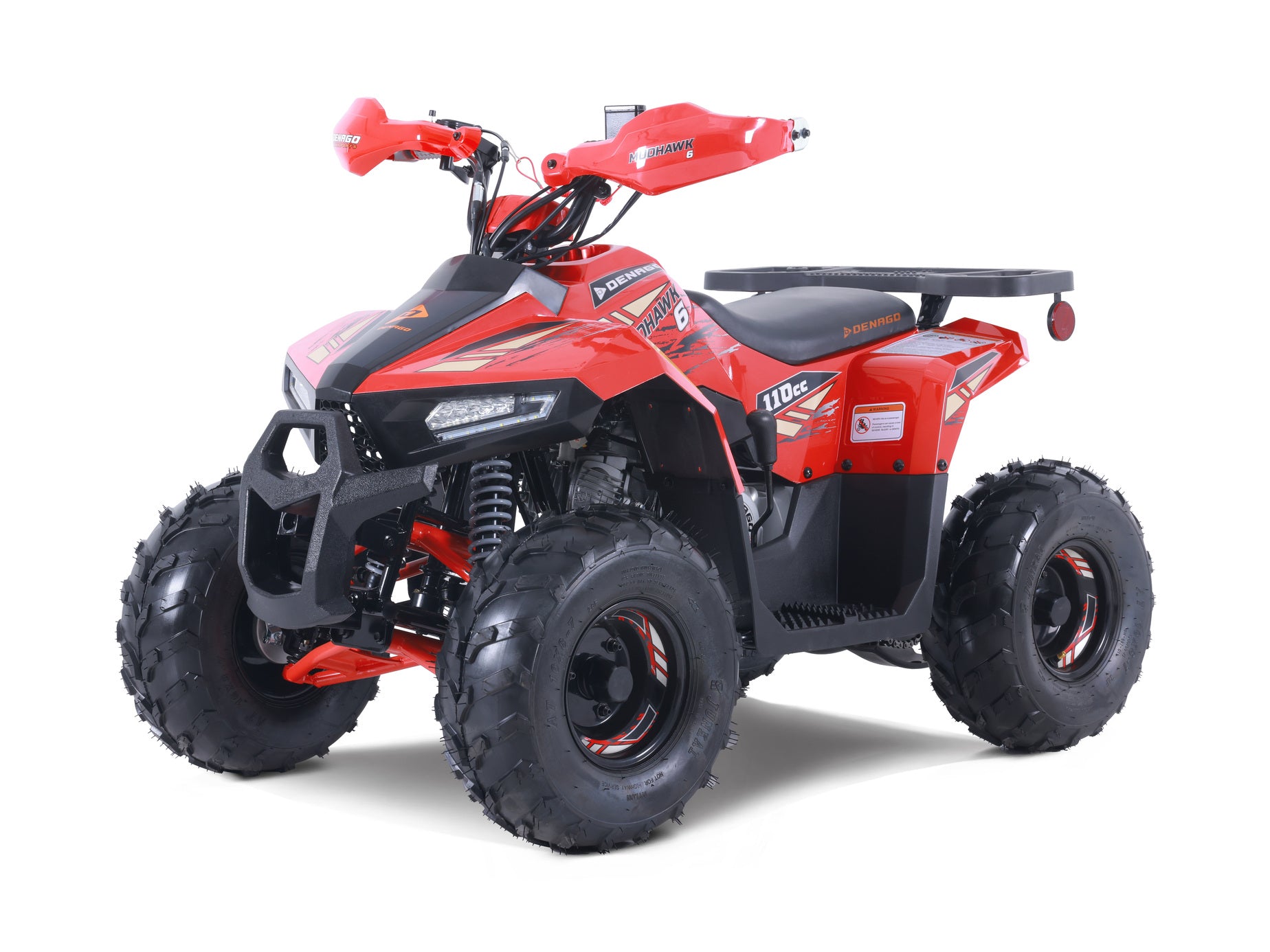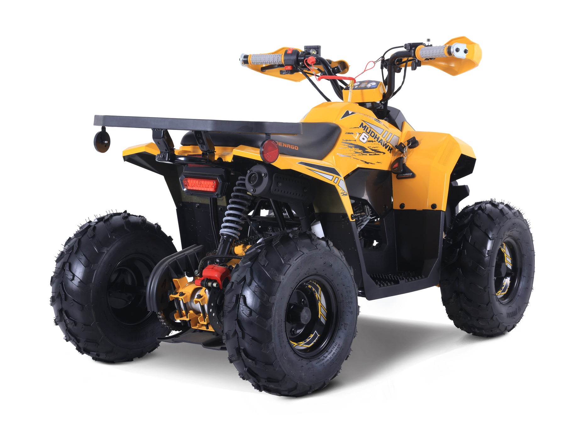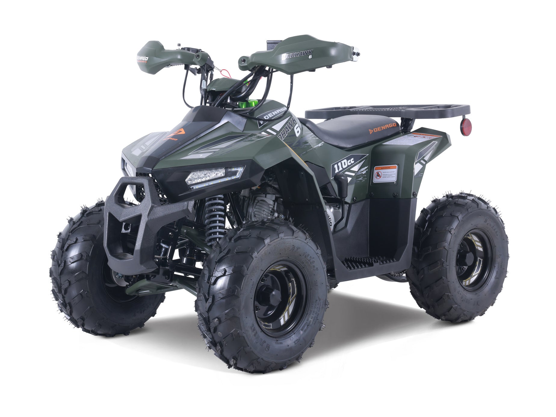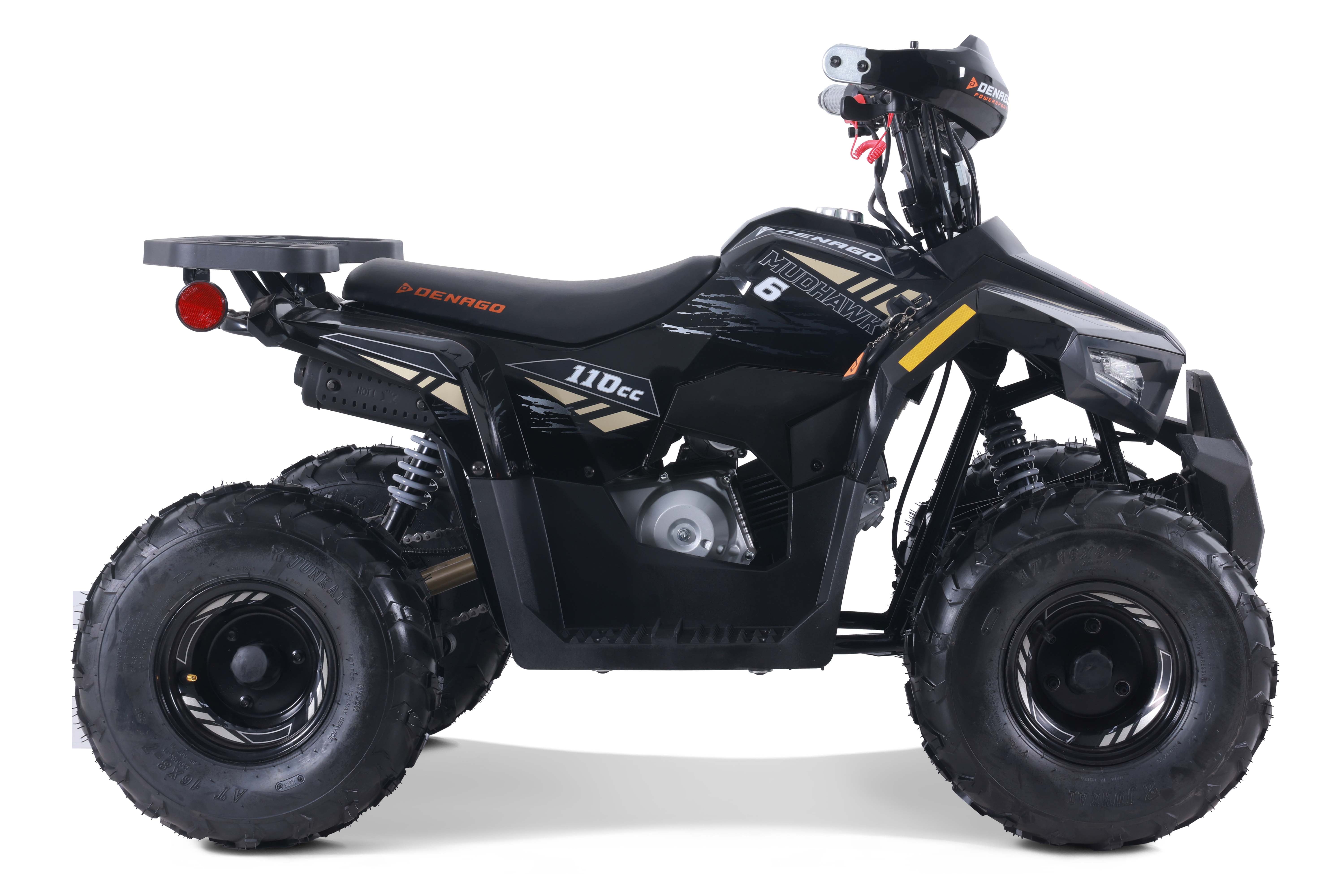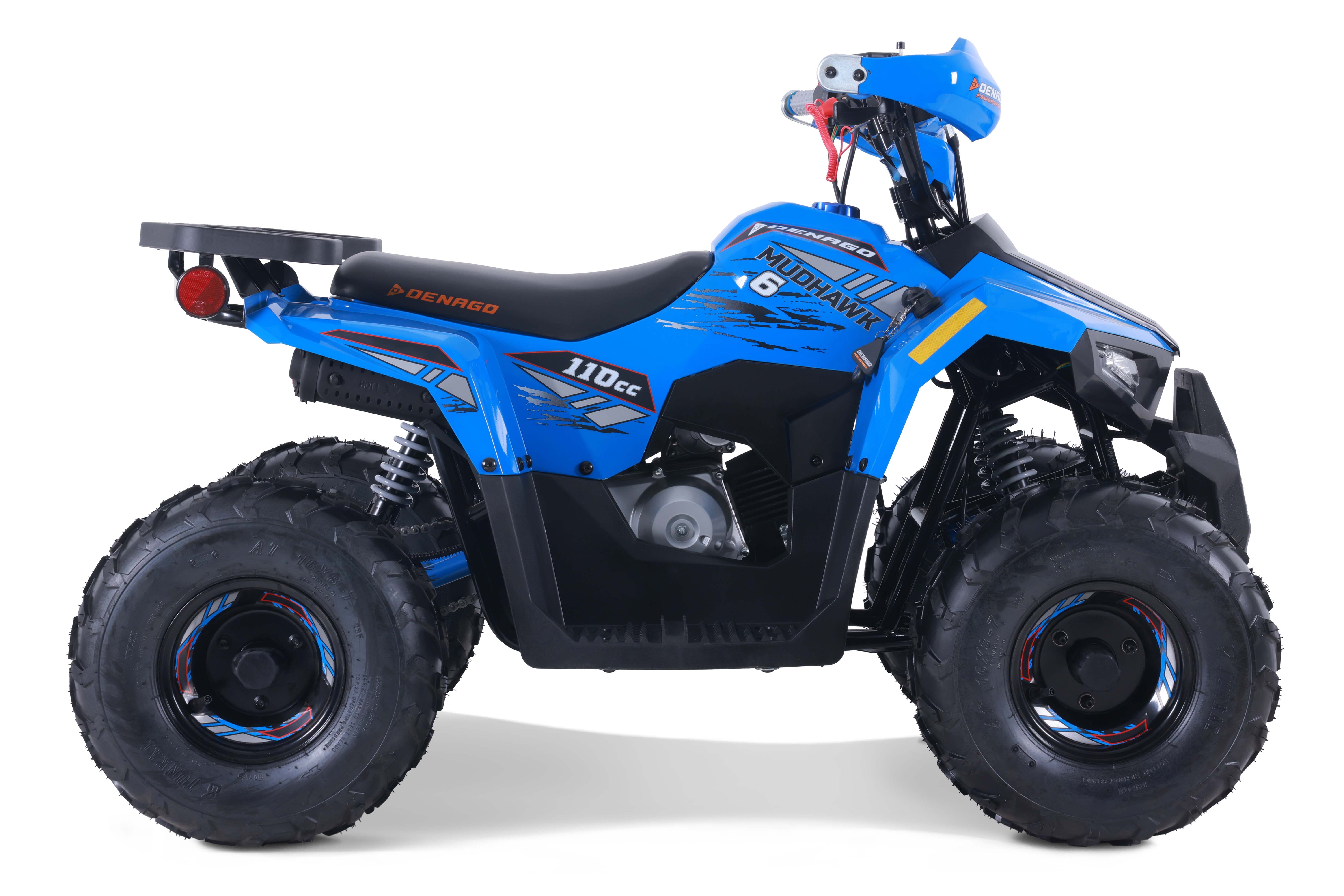 Hook your kids on a lifetime of adventure with the amazingly affordable Mudhawk 6. Rated for riders aged six and up, the Mudhawk 6 features the largest engine in its class and an automatic transmission that allows riders to go forward and reverse without using a clutch lever. Dual A-arm front suspension with adjustable shocks provide excellent bump control and stability. Safety is a priority at Denago, so the Mudhawk 6 includes a throttle limiter and remote shut-off to ensure a fun experience while young riders build confidence. The Mudhawk 6 is available in 7 different colors, including camo and pink, to suit the preferences of every young rider!