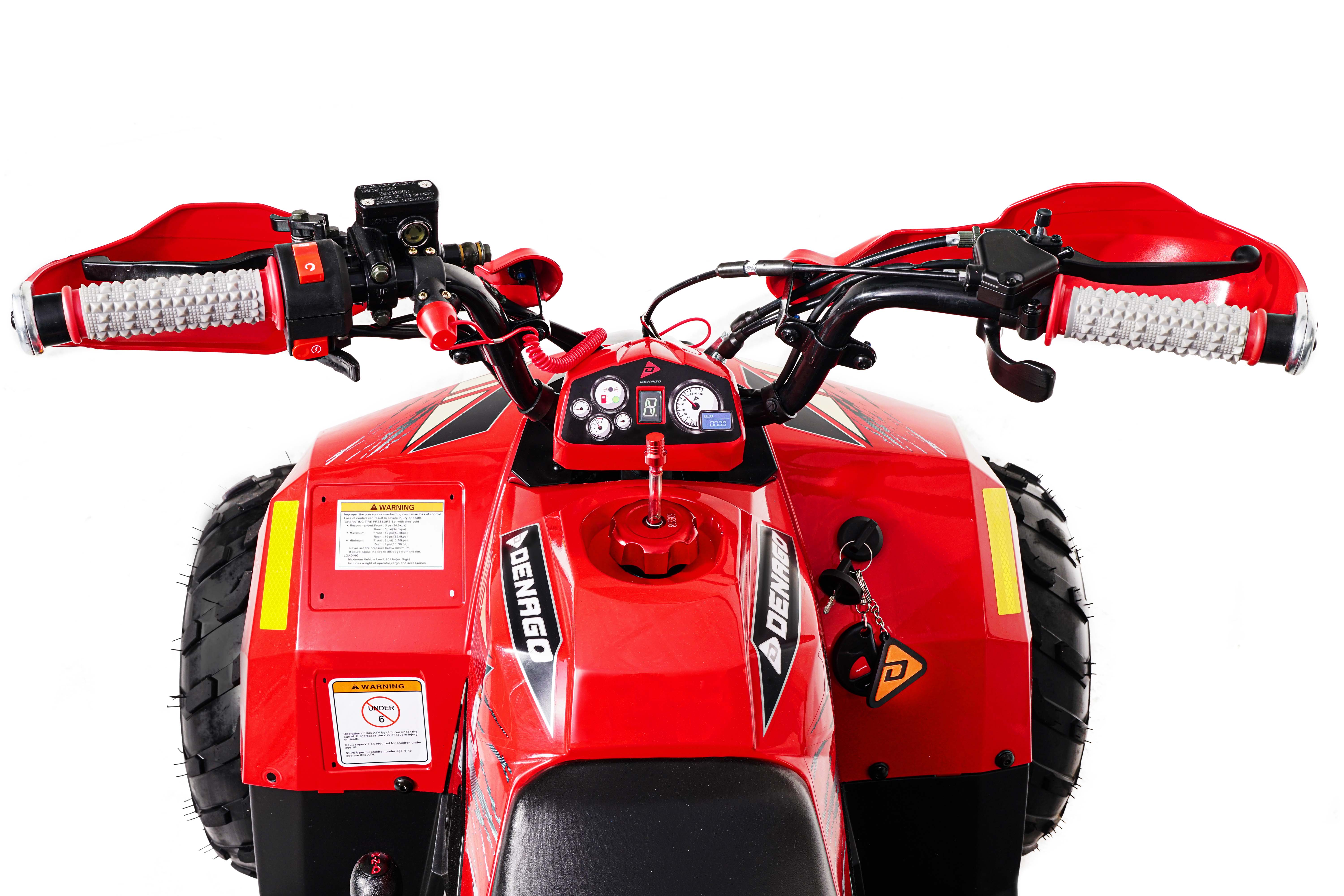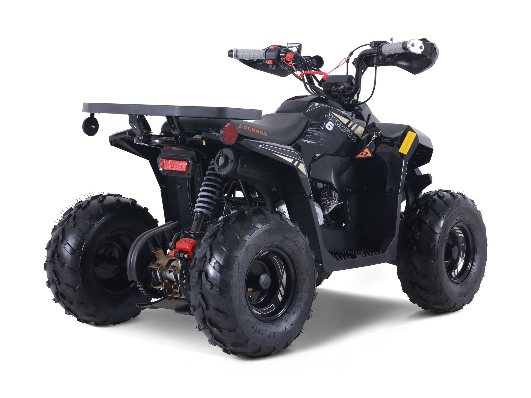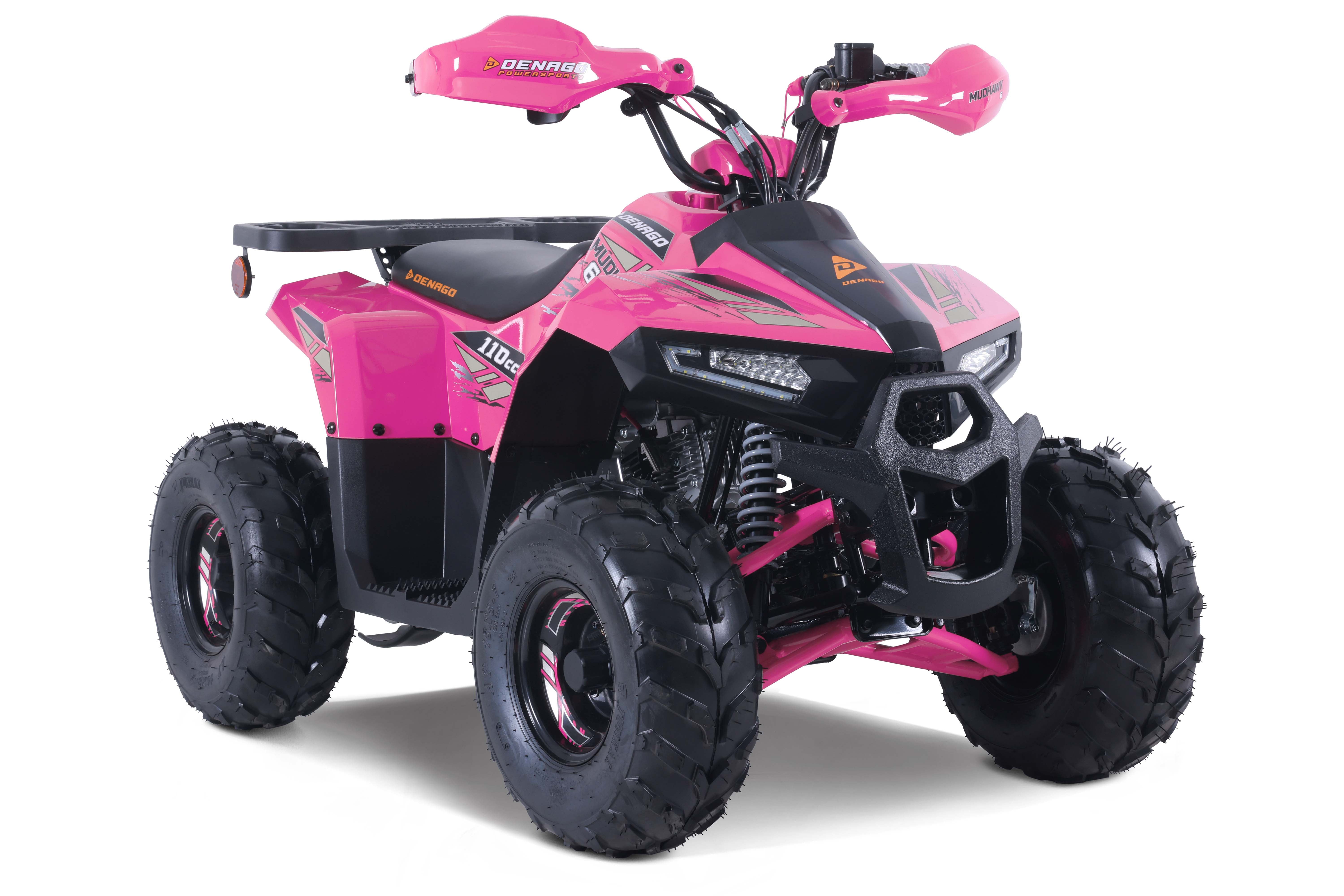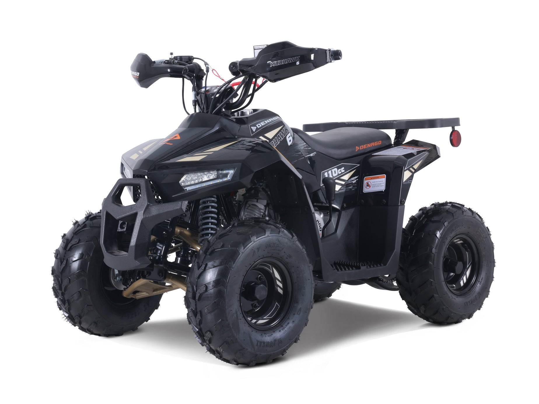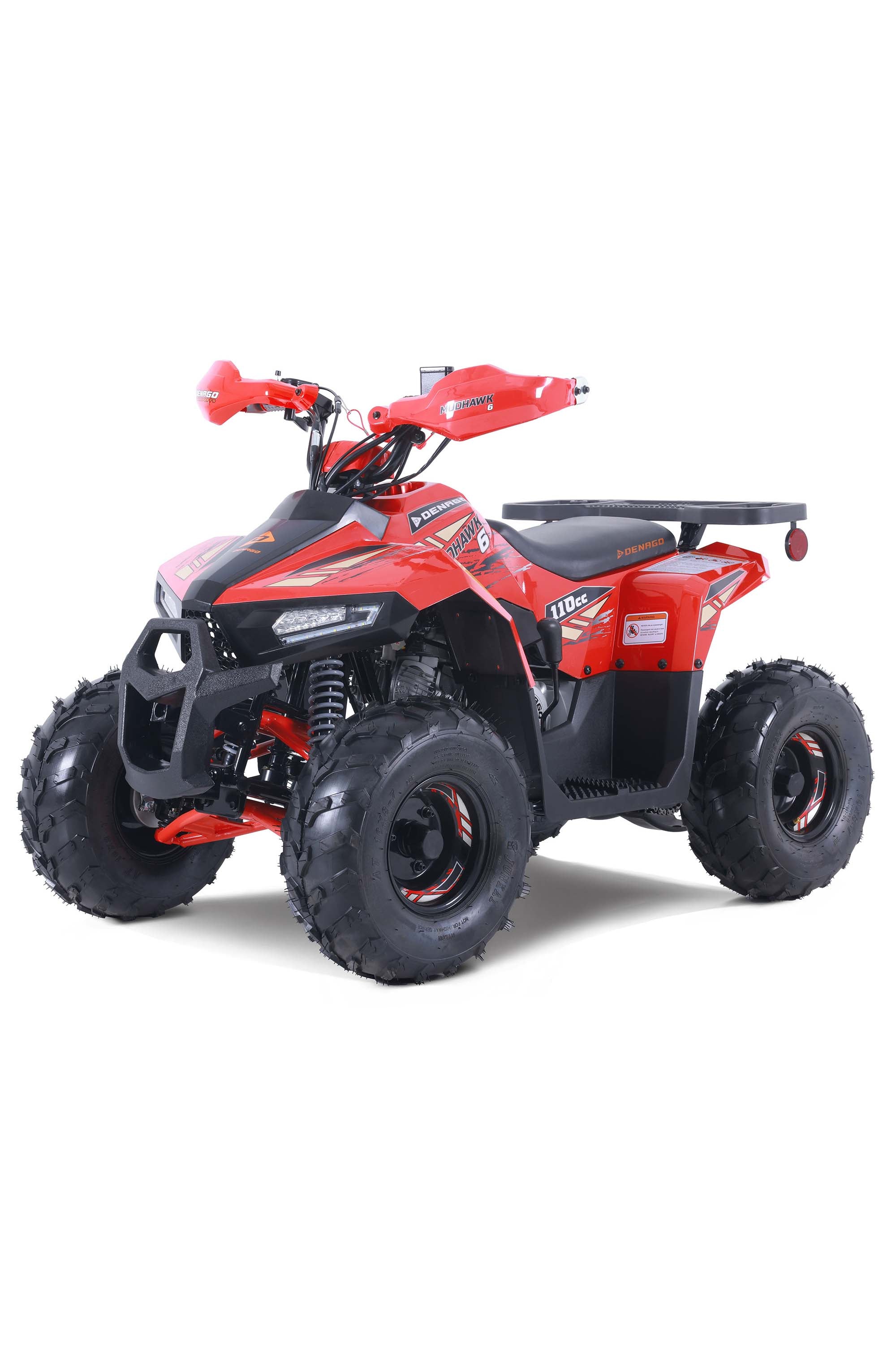 Hook your kids on a lifetime of adventure with the amazingly affordable Mudhawk 6. Rated for riders aged six and up, the Mudhawk 6 features the largest engine in its class and an automatic transmission that allows riders to go forward and reverse without using a clutch lever. Dual A-arm front suspension with adjustable shocks provide excellent bump control and stability. Safety is a priority at Denago, so the Mudhawk 6 includes a throttle limiter and remote shut-off to ensure a fun experience while young riders build confidence. The Mudhawk 6 is available in 7 different colors, including camo and pink, to suit the preferences of every young rider!