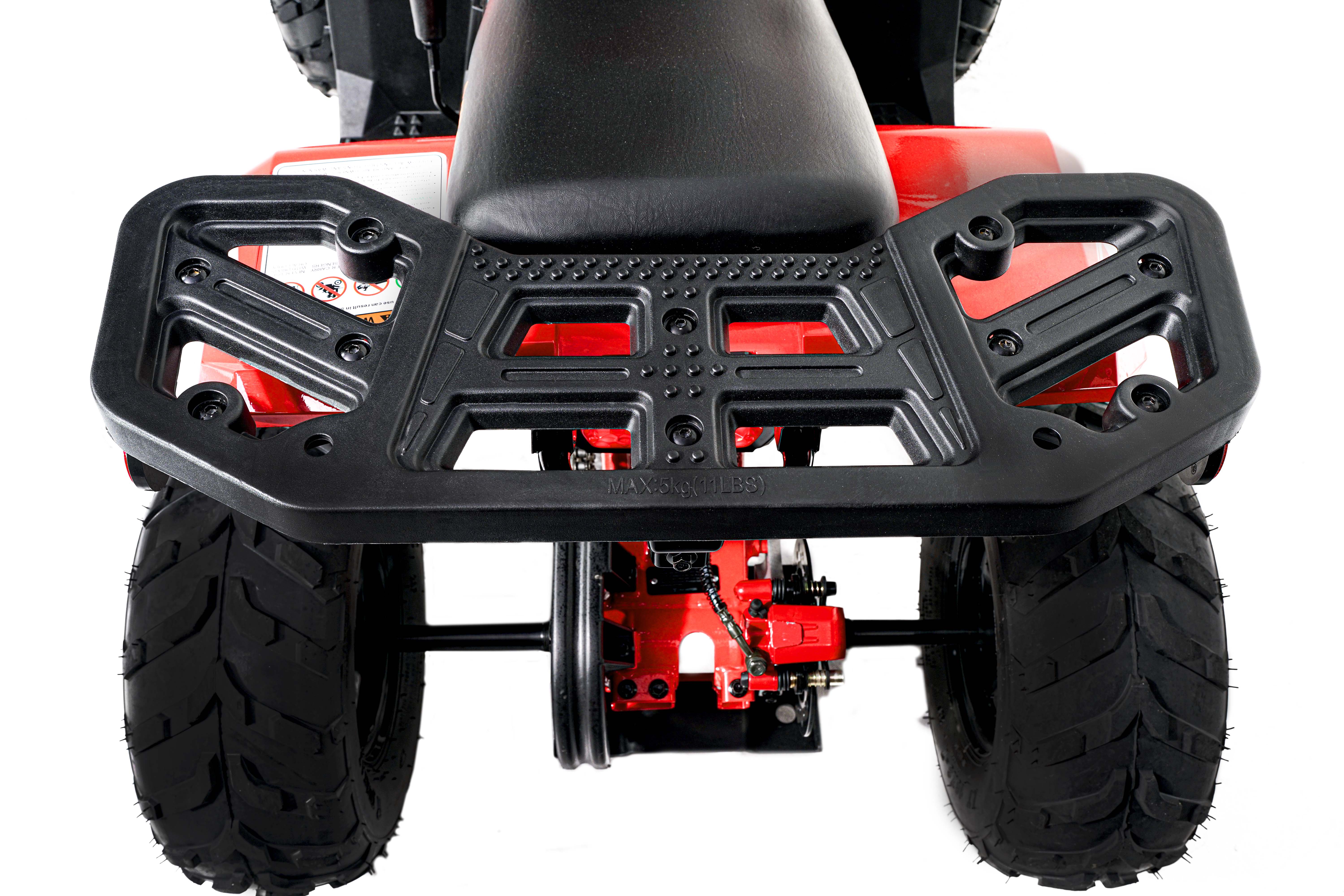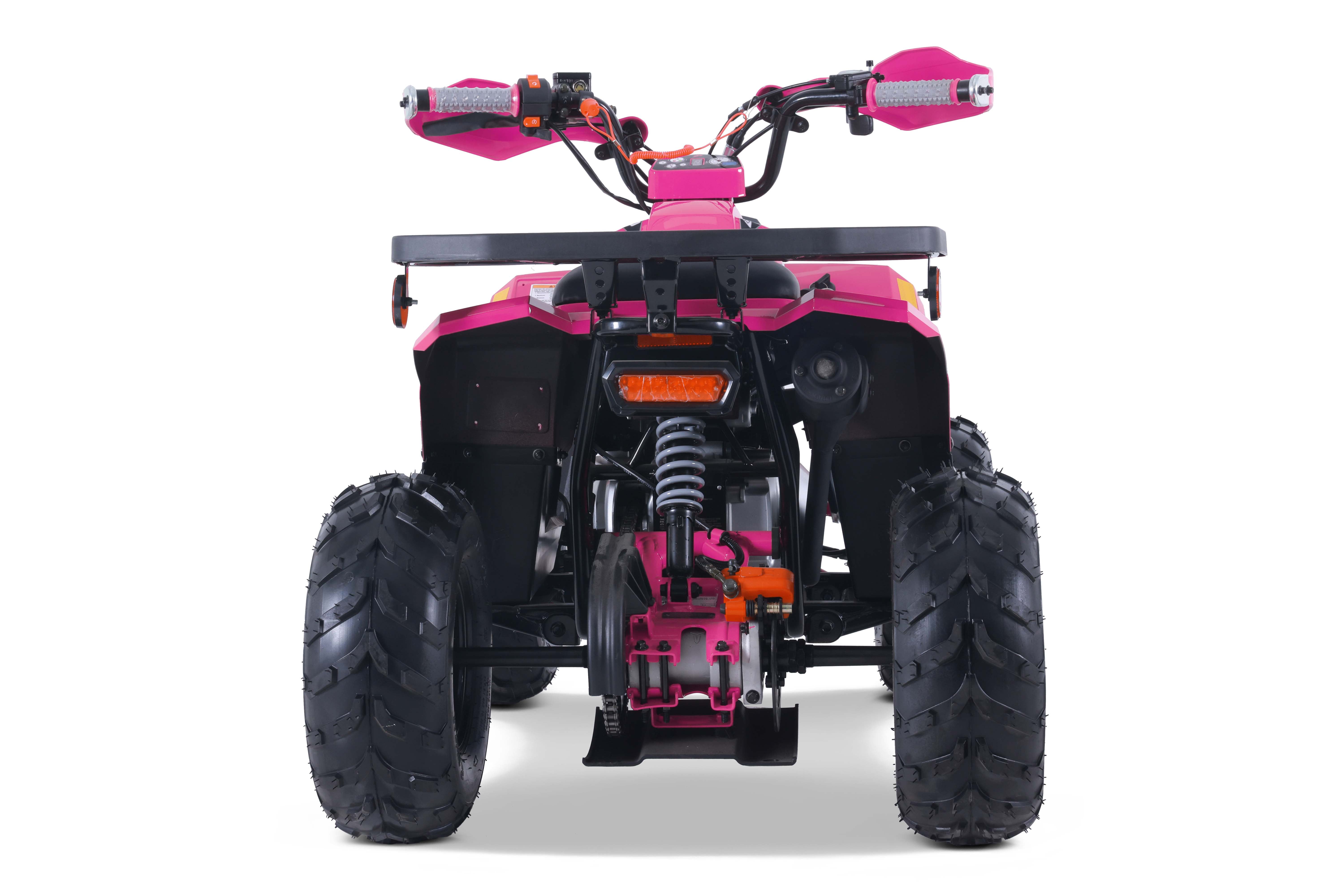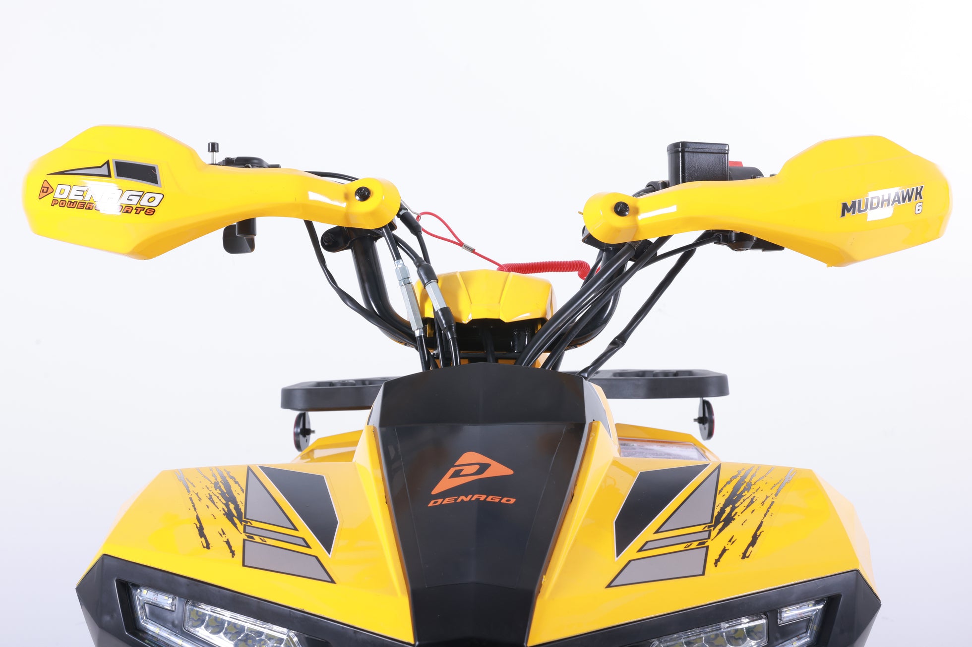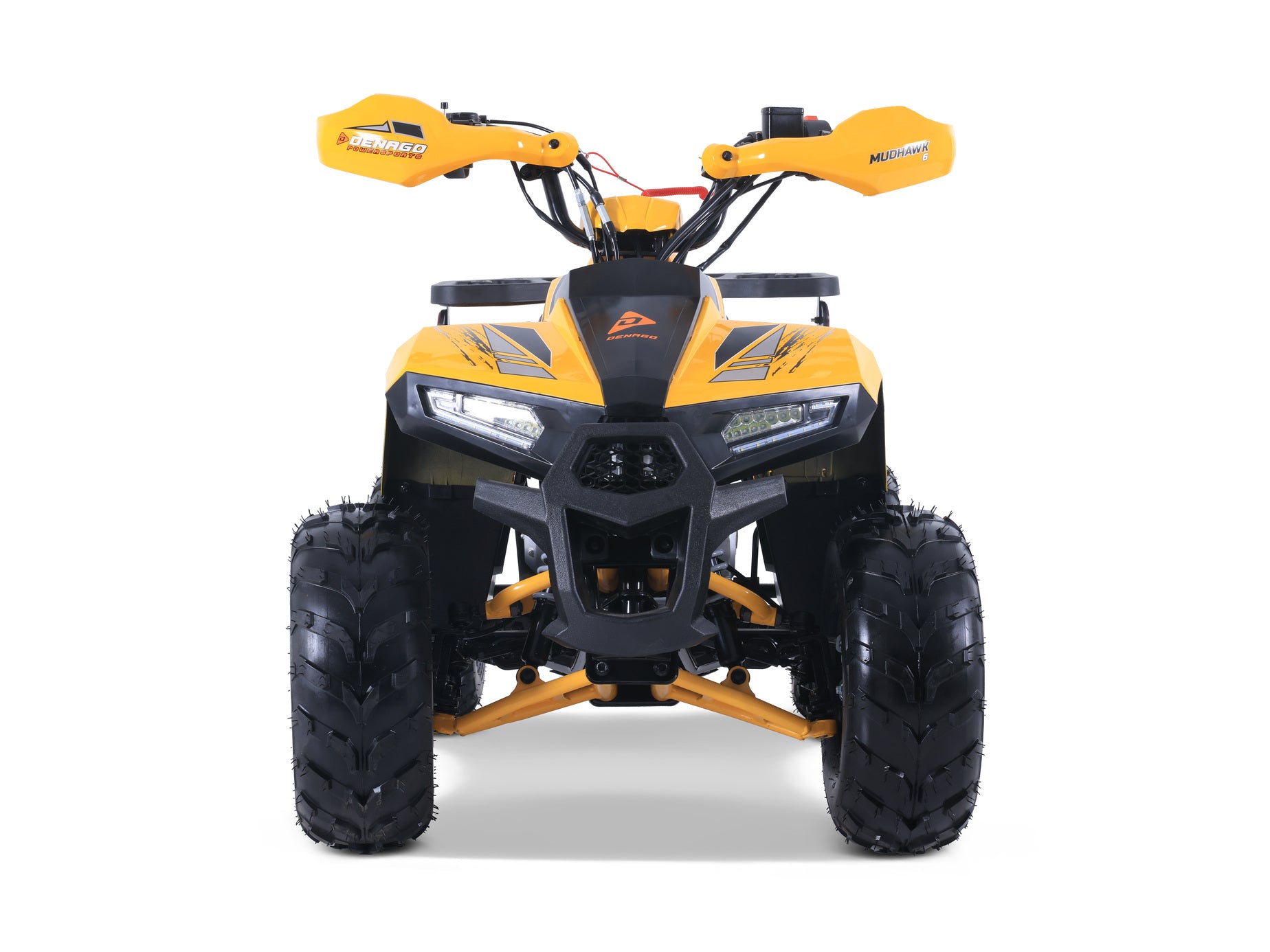 Hook your kids on a lifetime of adventure with the amazingly affordable Mudhawk 6. Rated for riders aged six and up, the Mudhawk 6 features the largest engine in its class and an automatic transmission that allows riders to go forward and reverse without using a clutch lever. Dual A-arm front suspension with adjustable shocks provide excellent bump control and stability. Safety is a priority at Denago, so the Mudhawk 6 includes a throttle limiter and remote shut-off to ensure a fun experience while young riders build confidence. The Mudhawk 6 is available in 7 different colors, including camo and pink, to suit the preferences of every young rider!