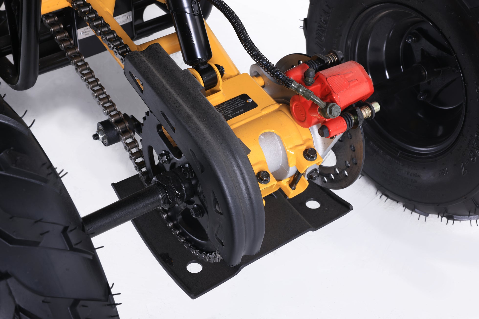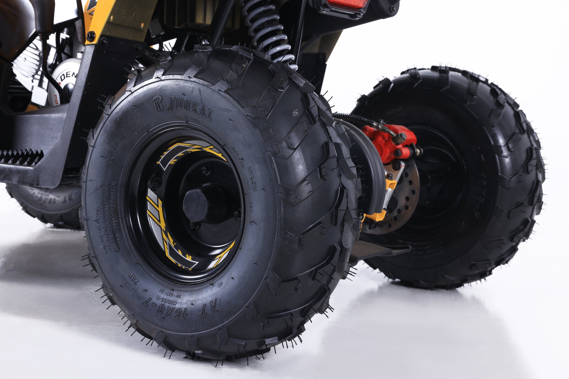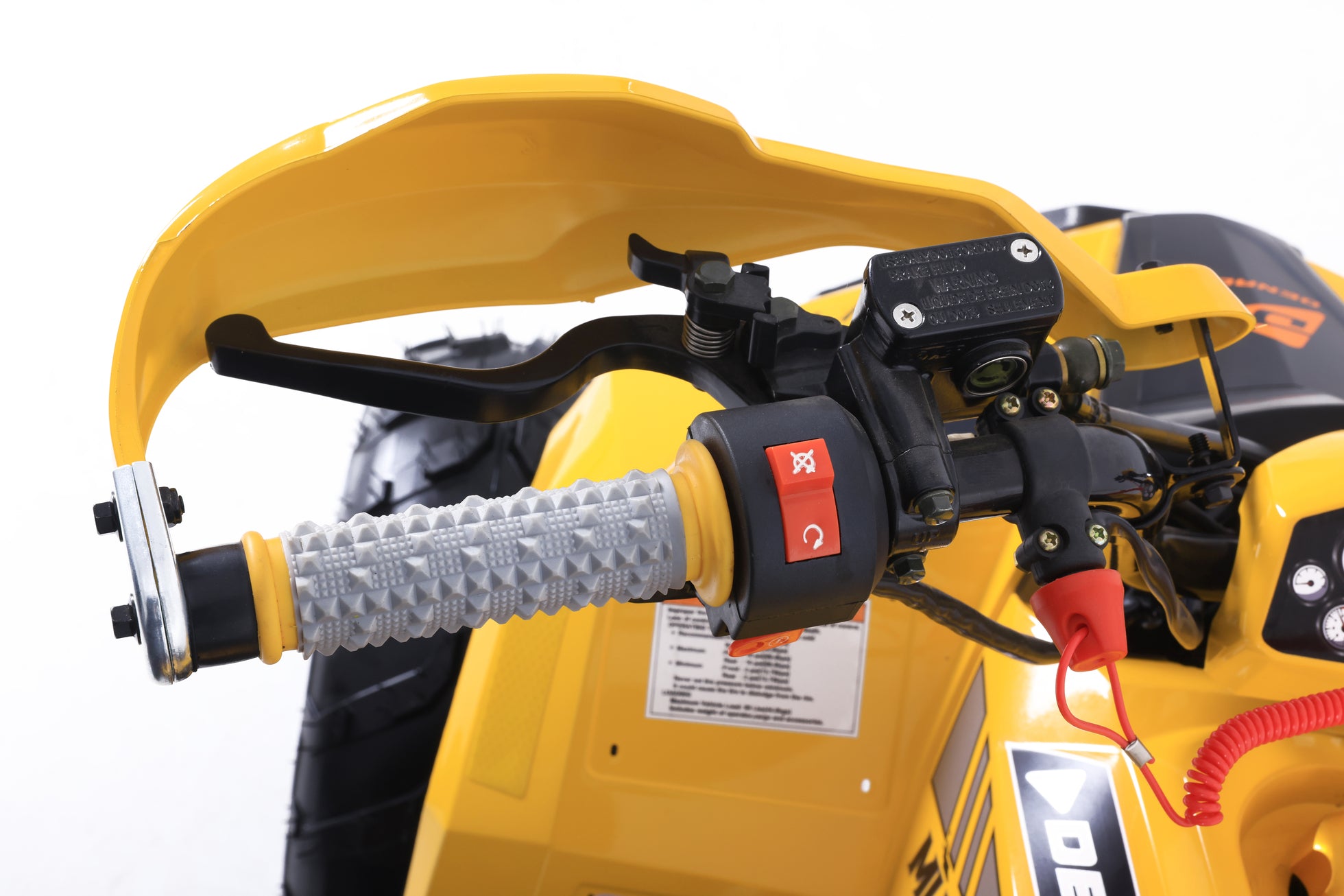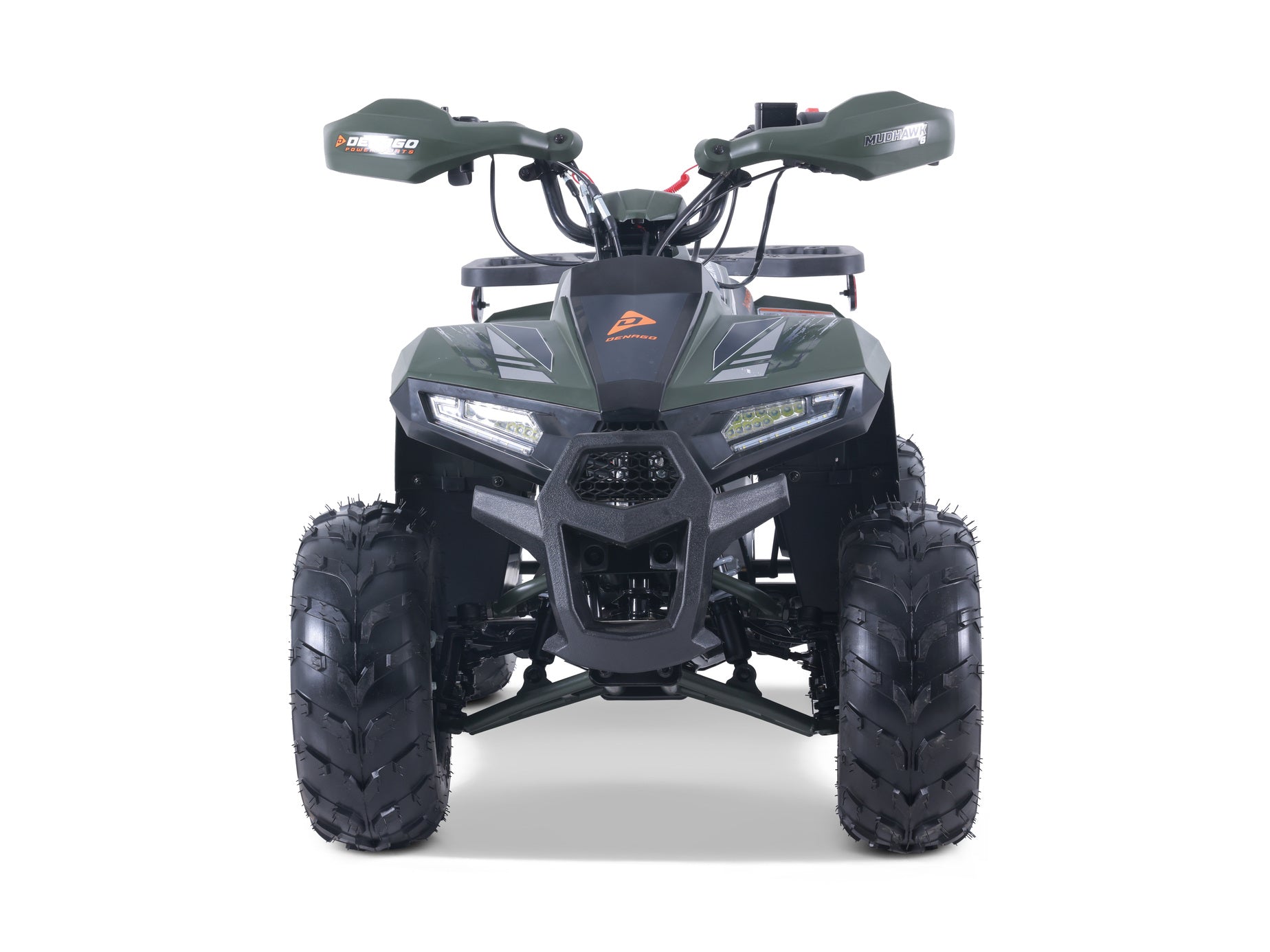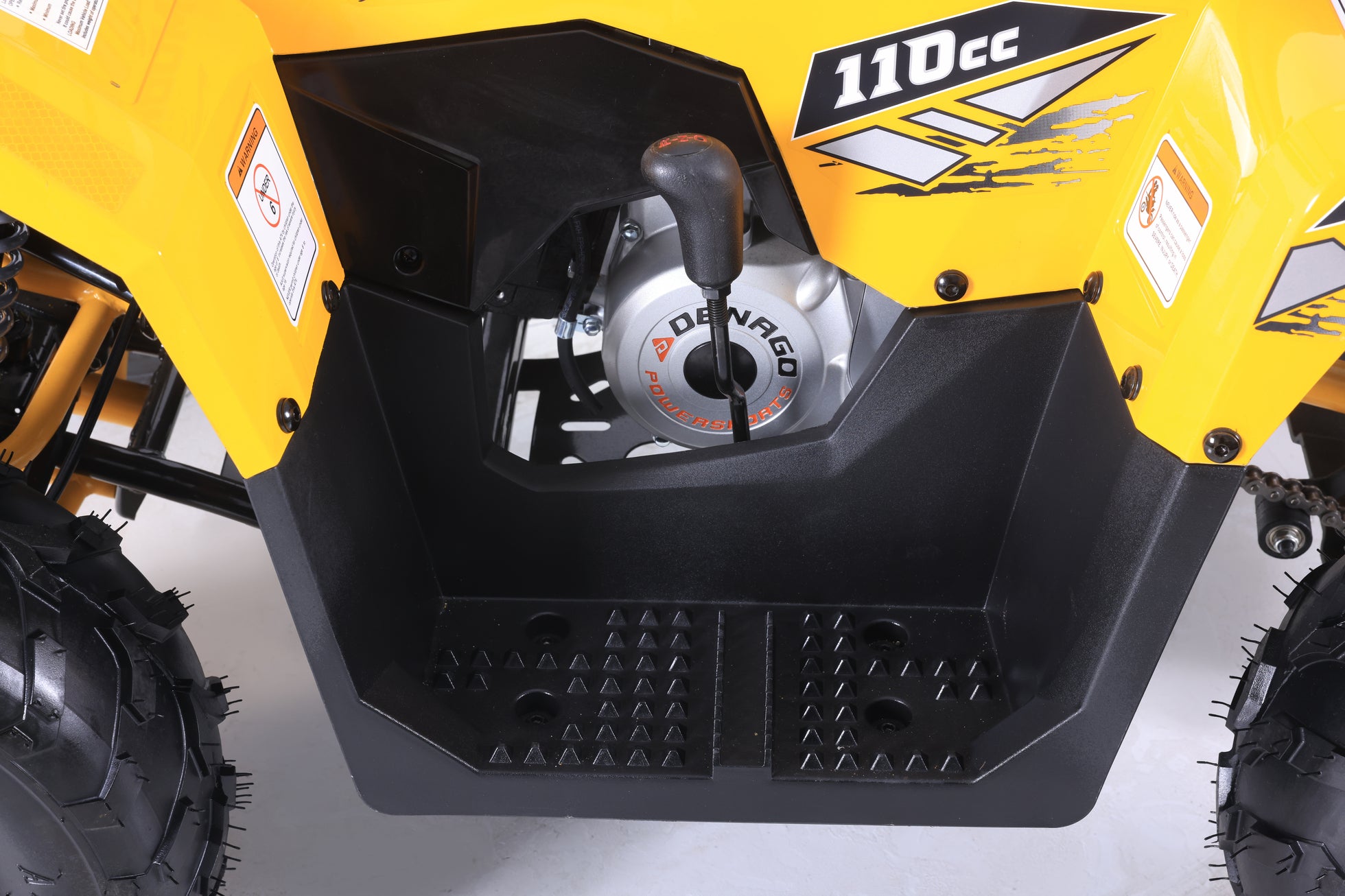 Hook your kids on a lifetime of adventure with the amazingly affordable Mudhawk 6. Rated for riders aged six and up, the Mudhawk 6 features the largest engine in its class and an automatic transmission that allows riders to go forward and reverse without using a clutch lever. Dual A-arm front suspension with adjustable shocks provide excellent bump control and stability. Safety is a priority at Denago, so the Mudhawk 6 includes a throttle limiter and remote shut-off to ensure a fun experience while young riders build confidence. The Mudhawk 6 is available in 7 different colors, including camo and pink, to suit the preferences of every young rider!