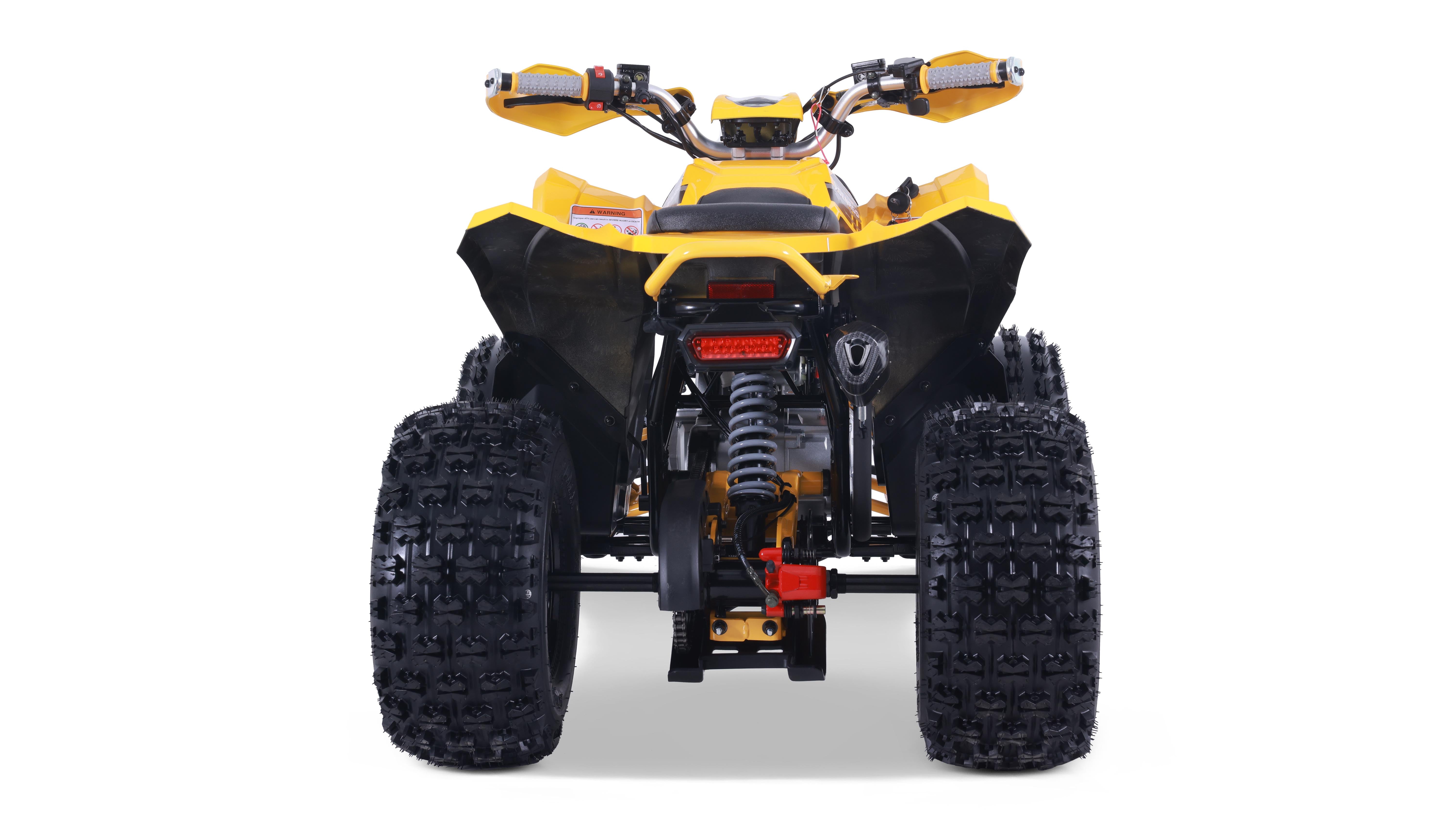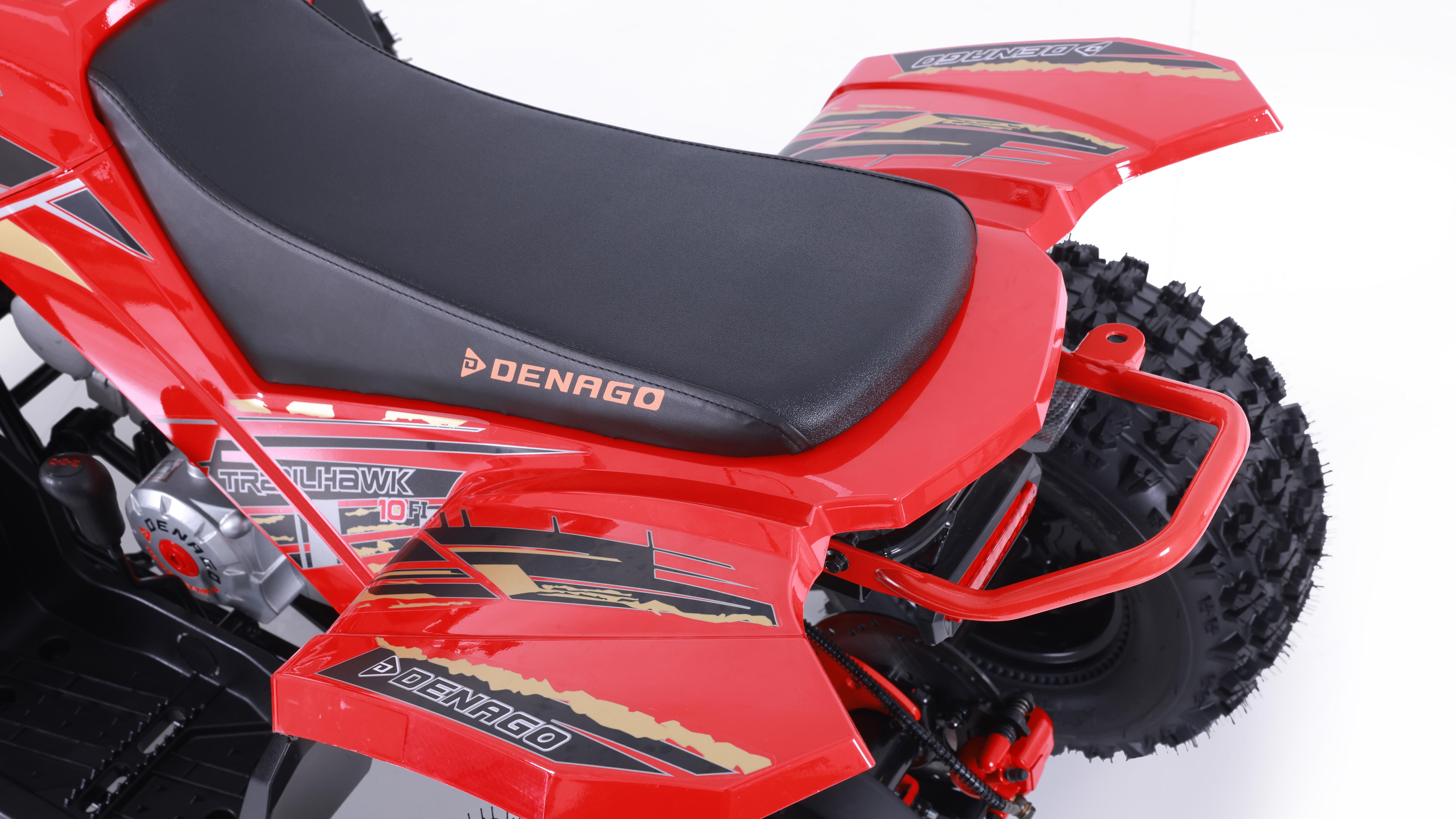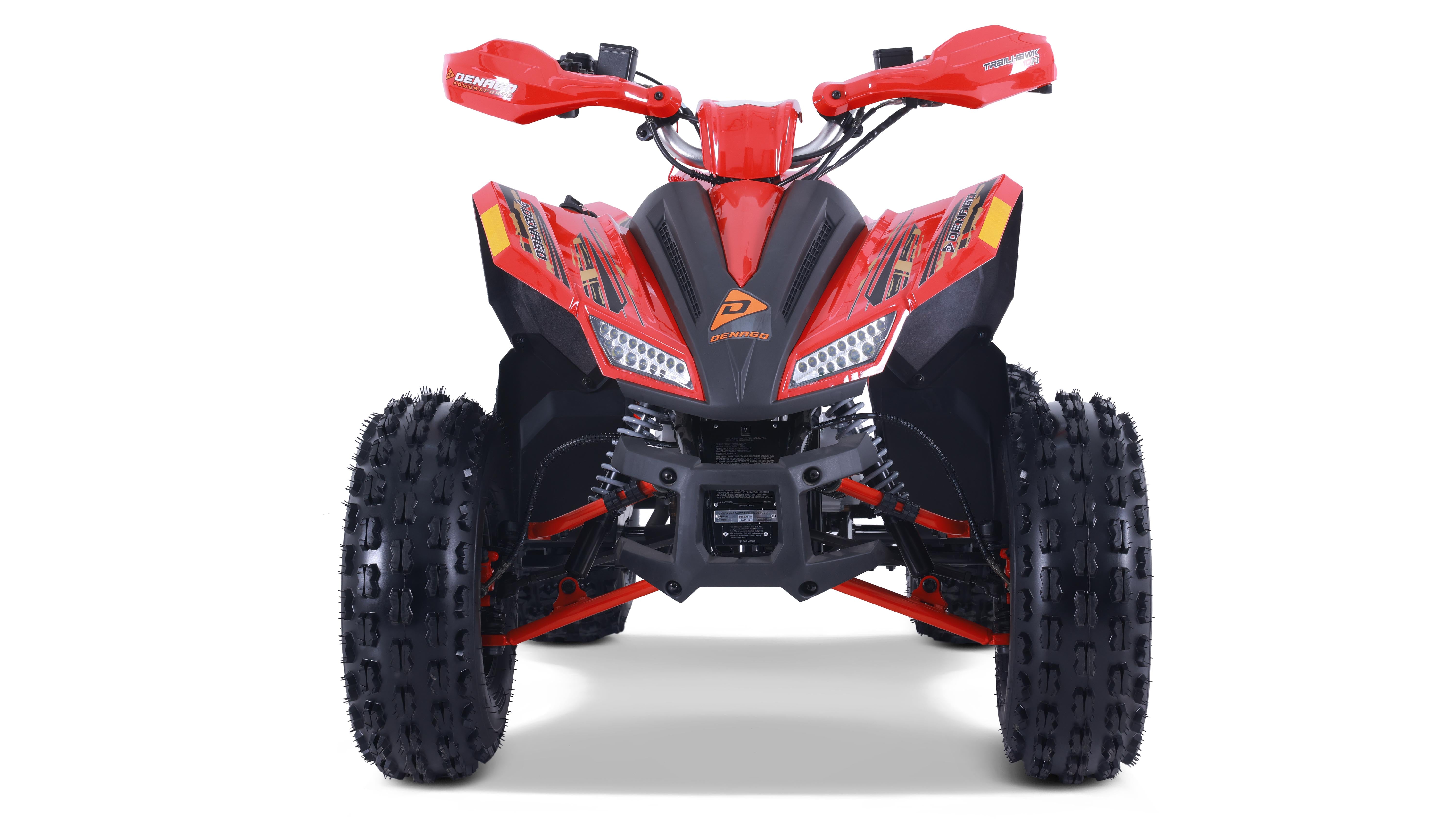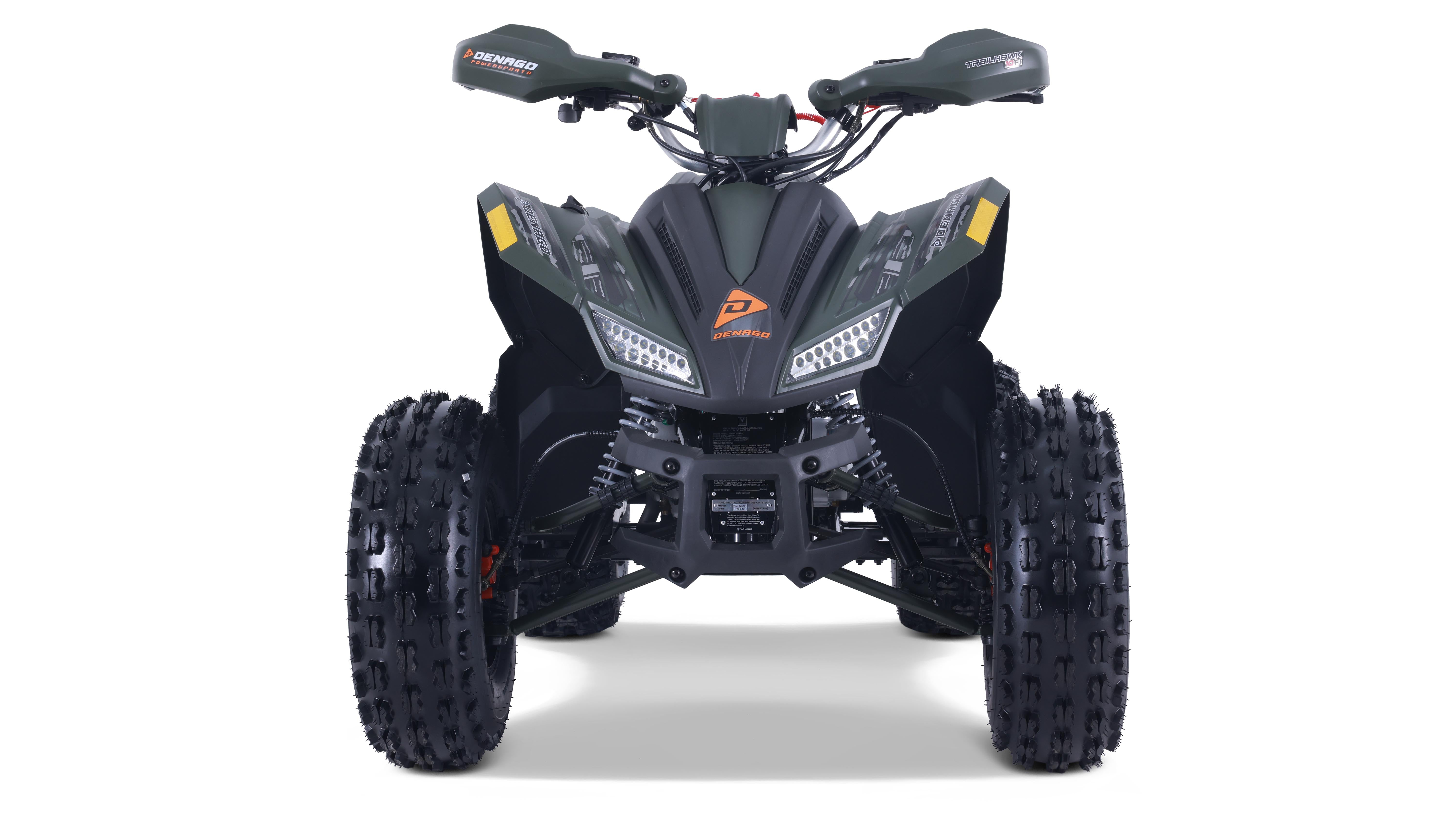 The Trailhawk 10FI is the sportiest Youth-10 ATV on the market, with independent double A-arm front suspension and adjustable shocks, a fuel-injected 120cc engine, electric starting, and sleek sporty style with color-matched handguards and grips. It’s available in 6 colors.